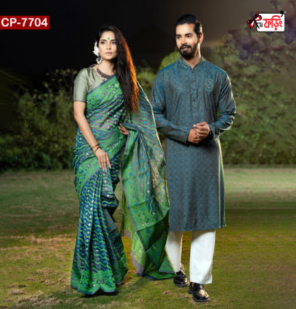 Luxury Silk Saree And Imported Fabric Embroidered Cotton Panjabi for Couples