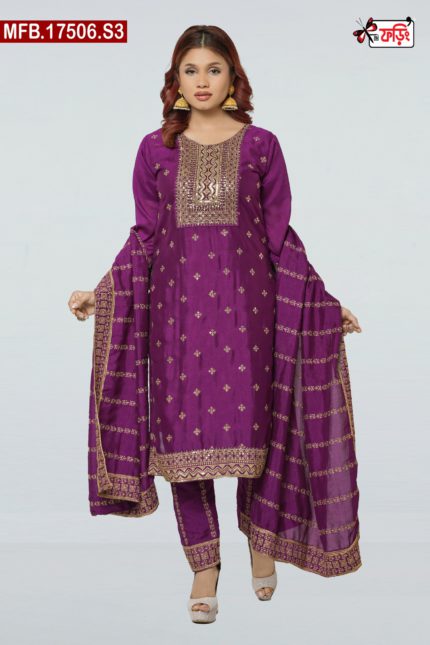 Festival Collection, Baishakhi Collection, Eid Collection, Puja Collection, WOMEN, Shalwar Kameez, Stitched Silk Shalwar Kameez