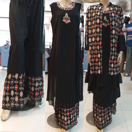 4,000.00৳Women’s Luxury Embroidered Imported Georgette Black Party Shalwar Kameez – Foring Premium Collection