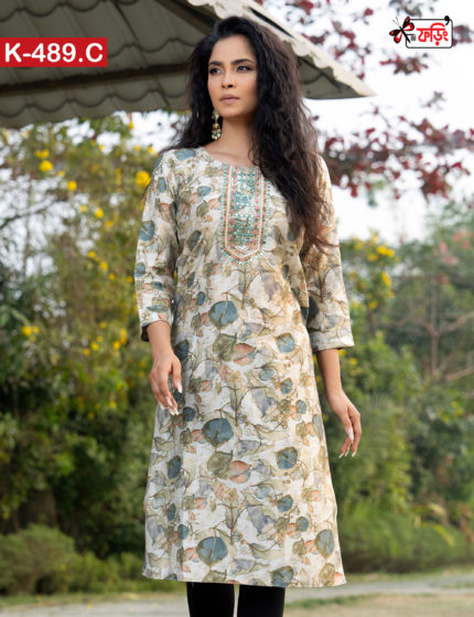 Aesthetic Elegant Embroidered Design Women’s Premium Imported Cotton Kurta | Foring Collection