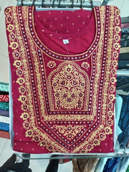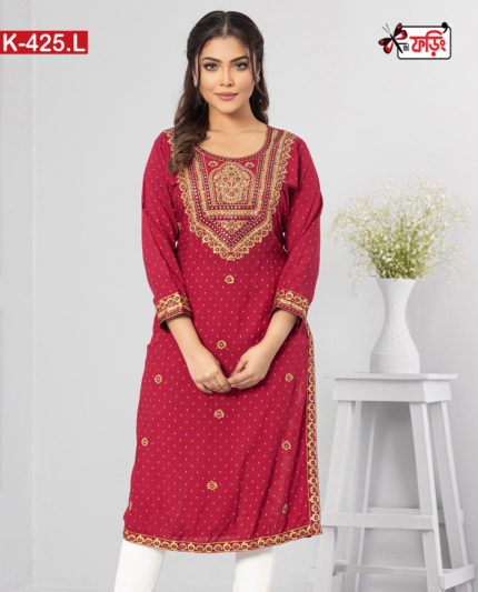 Aesthetic Elegant Embroidered Design Women’s Premium Imported Red Lilen Kurta | Foring Collection
