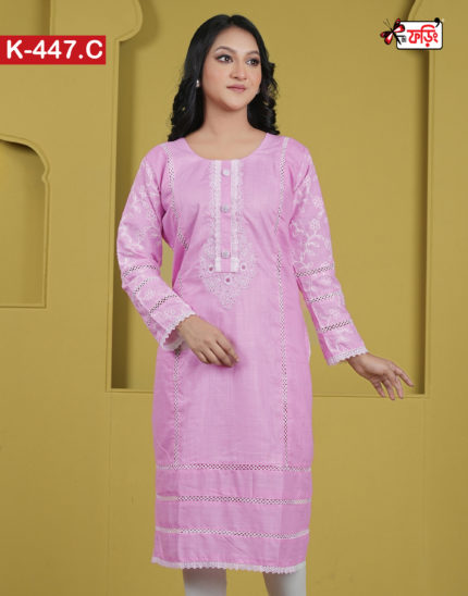 Aesthetic Elegant Embroidered Design Women’s Premium Imported Pink Cotton Kurta | Foring Collection
