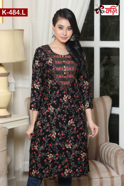 Aesthetic Elegant Embroidered Design Women’s Premium Imported Black Cotton Kurta | Foring Collection