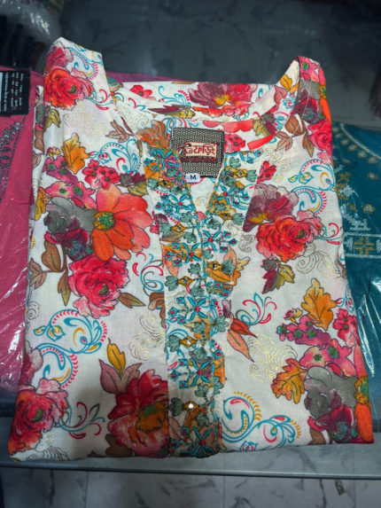 Aesthetic Elegant Embroidered Design Women’s Premium Imported Lilen Kurta | Foring Collection
