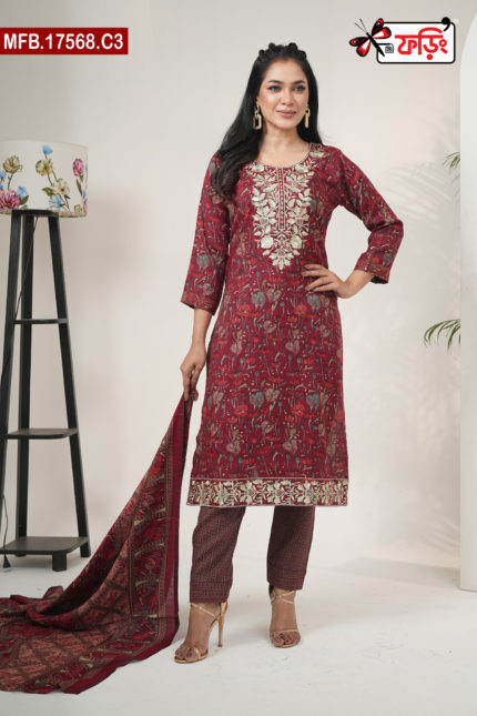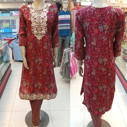 Luxury Women’s Imported Cotton Fabric with Embroidered Stitched Shalwar Kameez Set