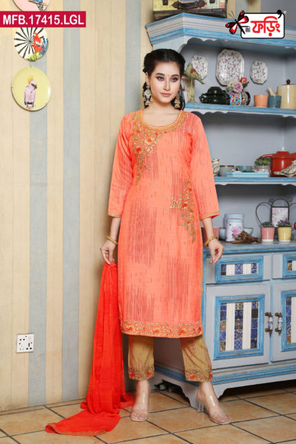 Luxury Women’s Imported Silk Fabric with Embroidered Stitched Shalwar Kameez Set