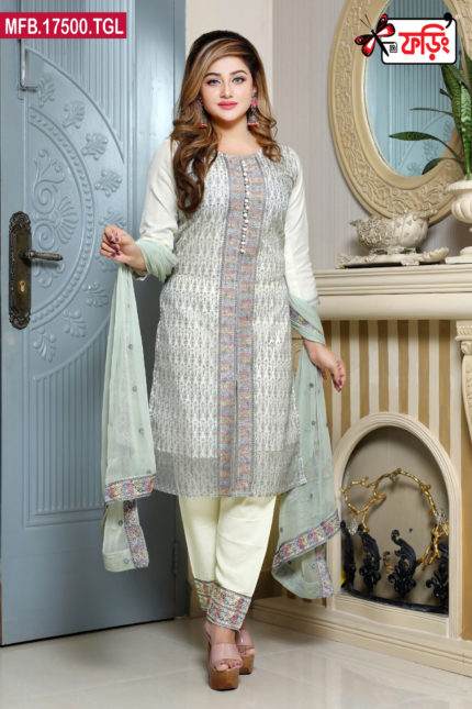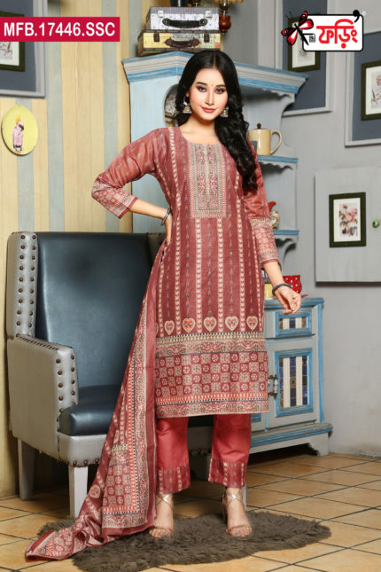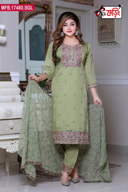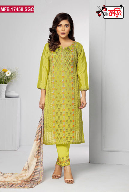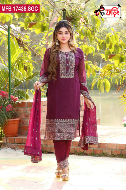 Luxury Women’s Imported Silk Fabric with Embroidered Stitched Shalwar Kameez Set