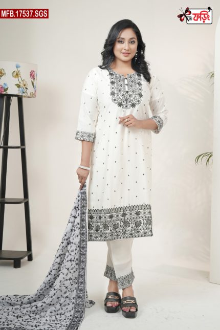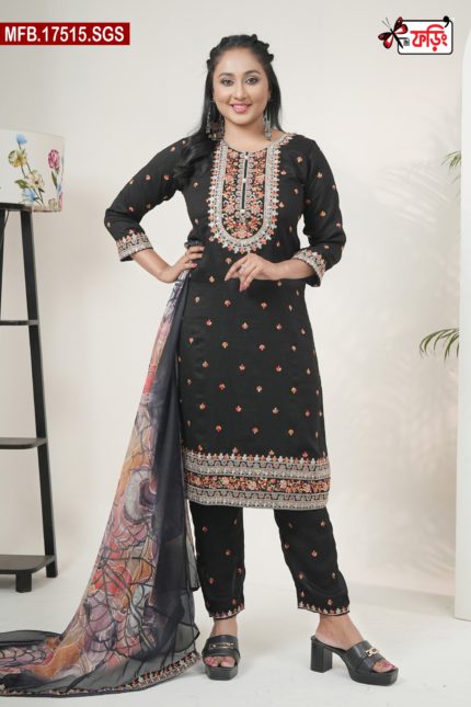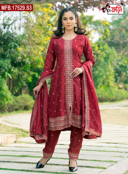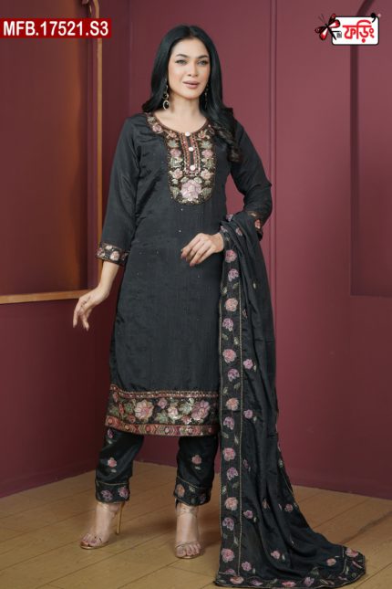 Luxury Women’s Imported Silk Fabric with Embroidered Stitched Shalwar Kameez Set