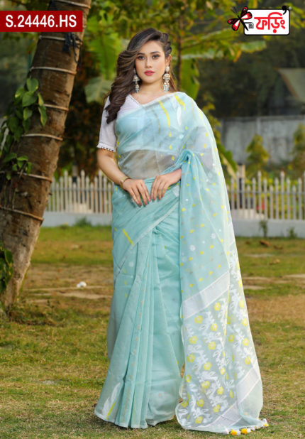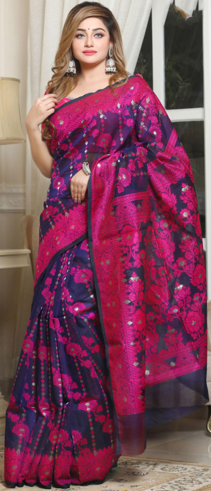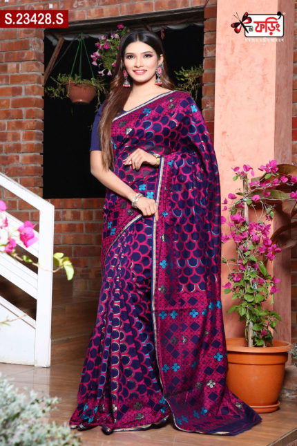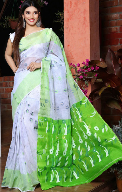 Aesthetic Design Silk Jamdani Saree. Premium Stylish and elegant piece from – Foring Collection. Include Running Blouse Piece