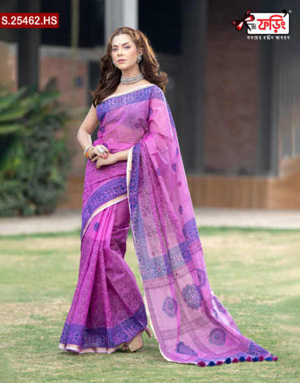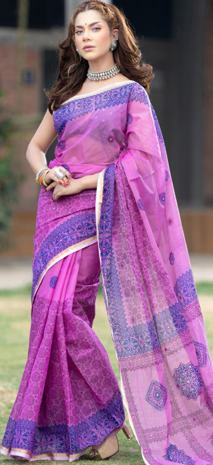 Premium Half Silk Boutique Sharee | Embroidered & Screen Printed – Foring Collection. Include Running Blouse Piece Available