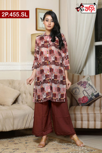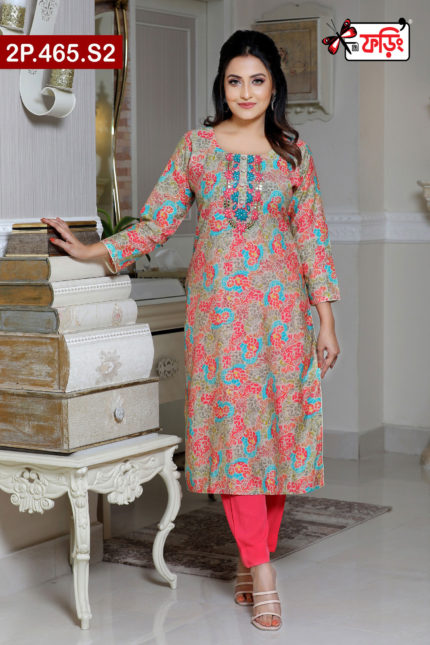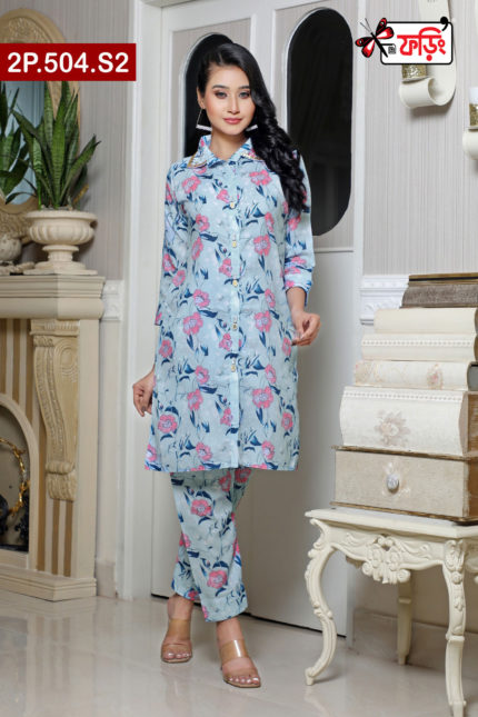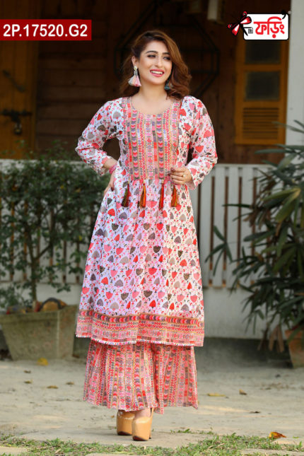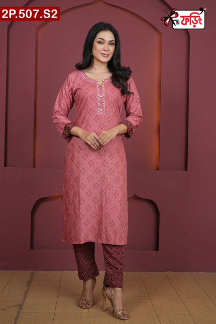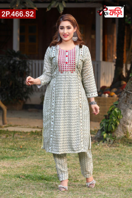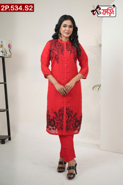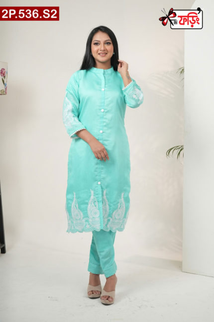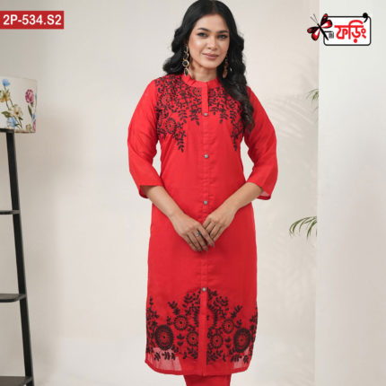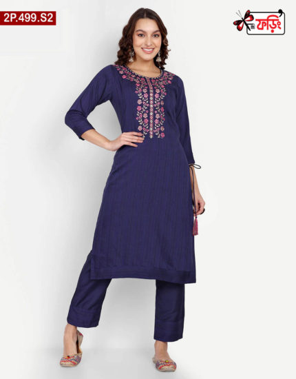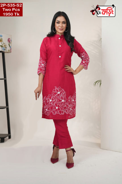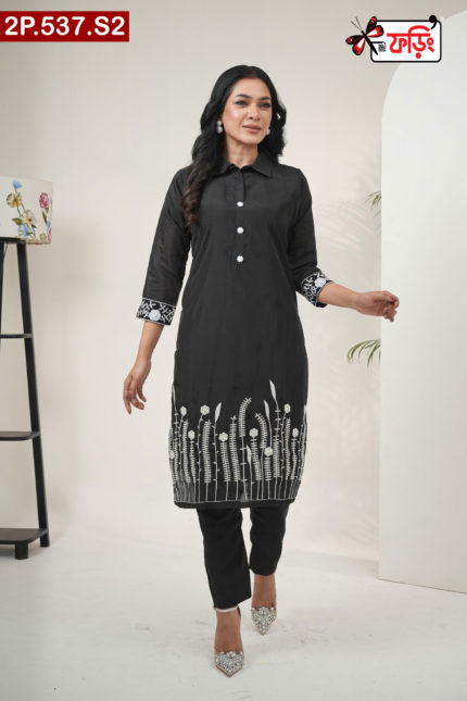 Premium Style Ladies Silk Two Piece Outfit with Embroidered Design