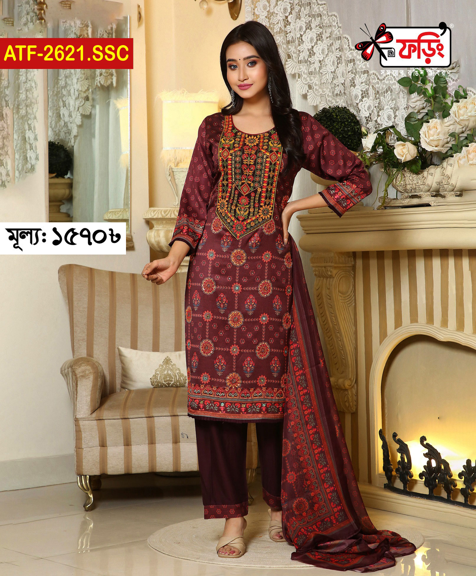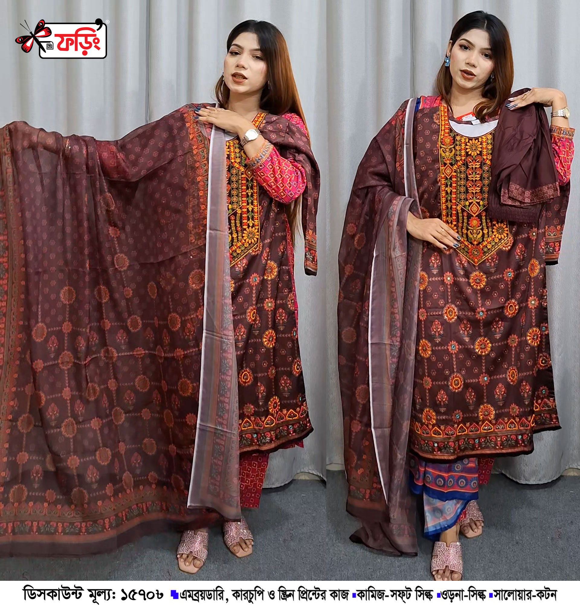 সফ্ট সিল্ক থ্রি-পিছটি পাচ্ছেন কারচুপি, এমব্রয়ডারি ও স্ক্রিন প্রিন্টের কাজ করা