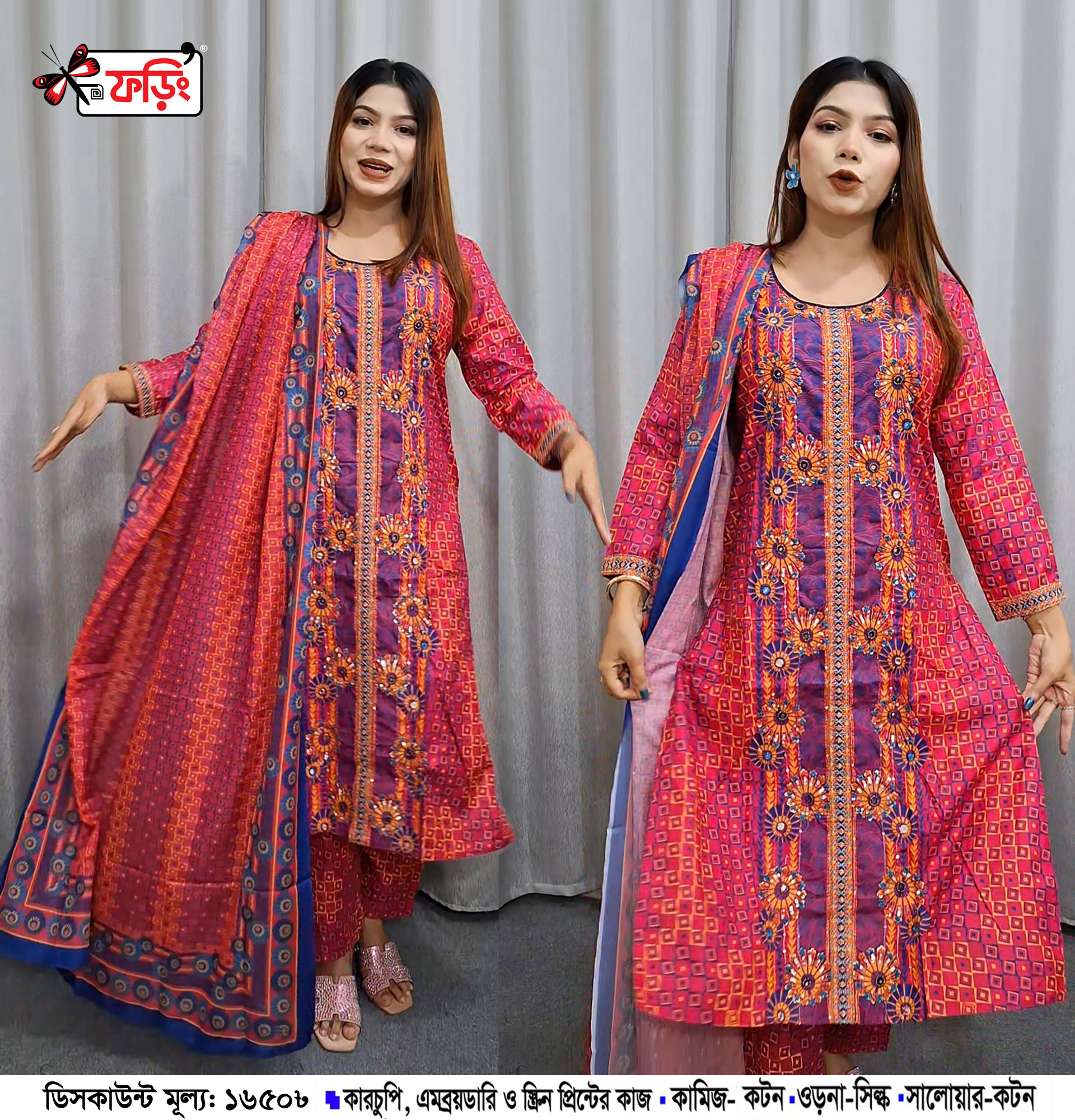 সফ্ট সিল্ক থ্রি-পিছটি পাচ্ছেন কারচুপি, এমব্রয়ডারি ও স্ক্রিন প্রিন্টের কাজ করা