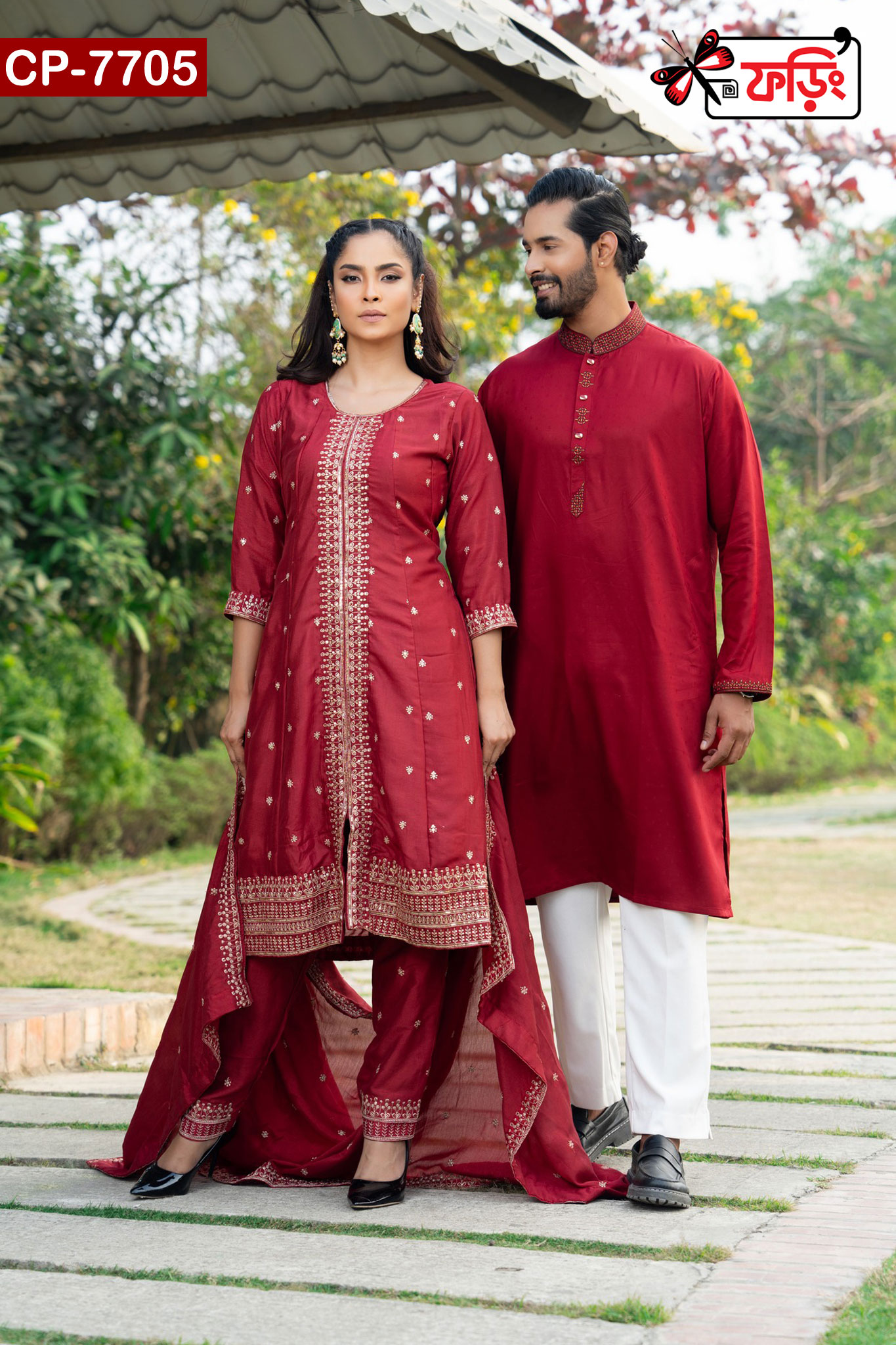 Luxury Imported Fabric Embroidered Silk Shalwar kameez Set And Cotton Panjabi for Couples