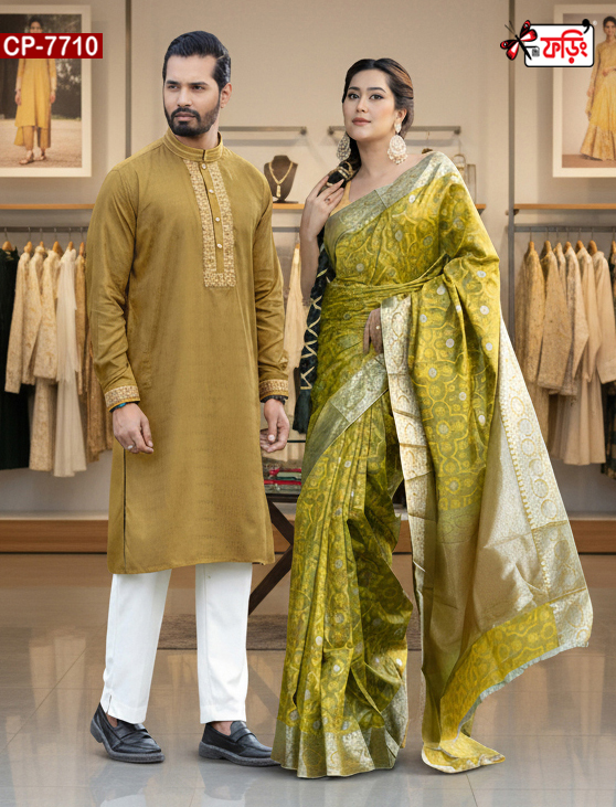 Luxury Silk Saree And Imported Fabric Embroidered Cotton Panjabi for Couples