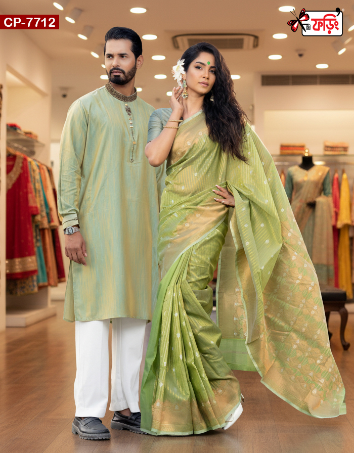 Luxury Women’s Half Silk Saree And Imported Fabric Embroidered Cotton Panjabi for Couples