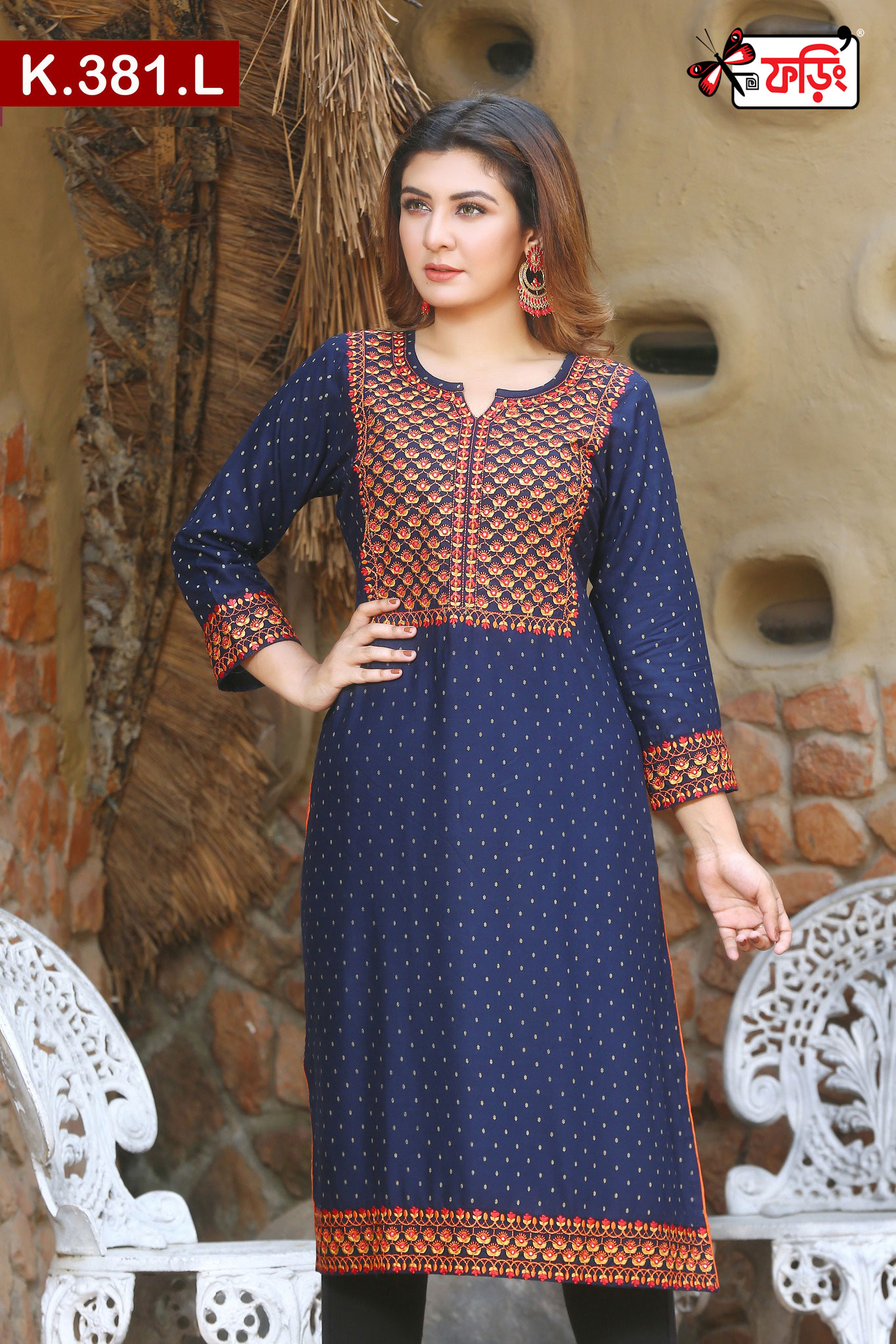 Women’s Blue Kurta Imported Premium Lilen with Elegant Embroidered Design | Foring Collection
