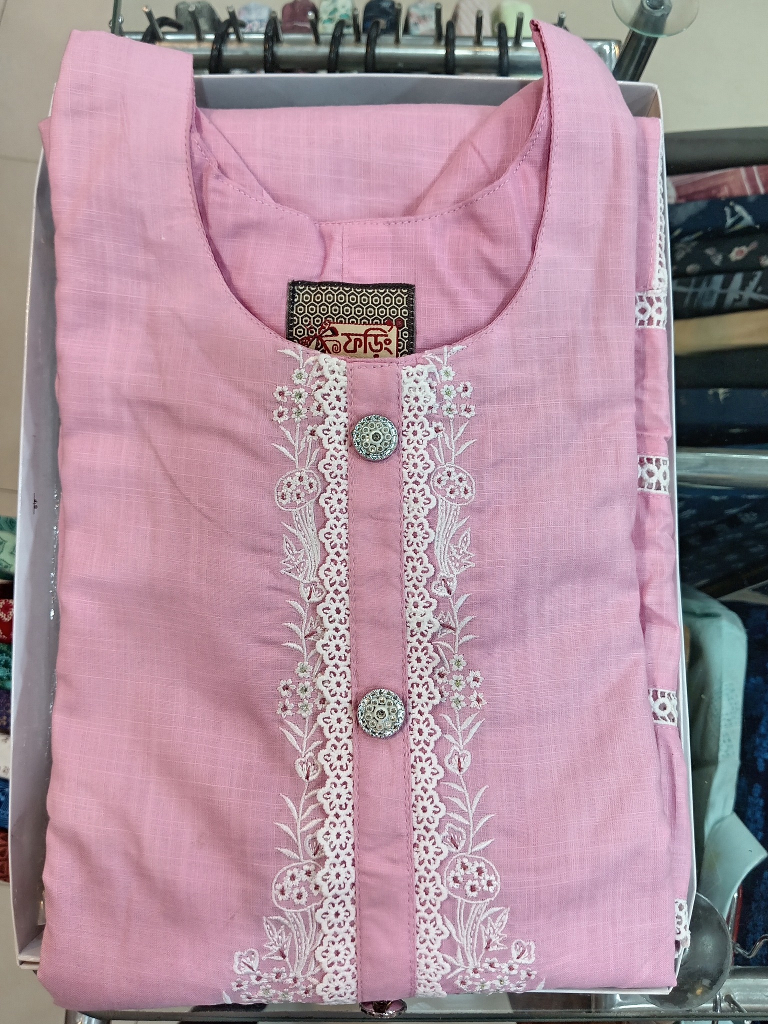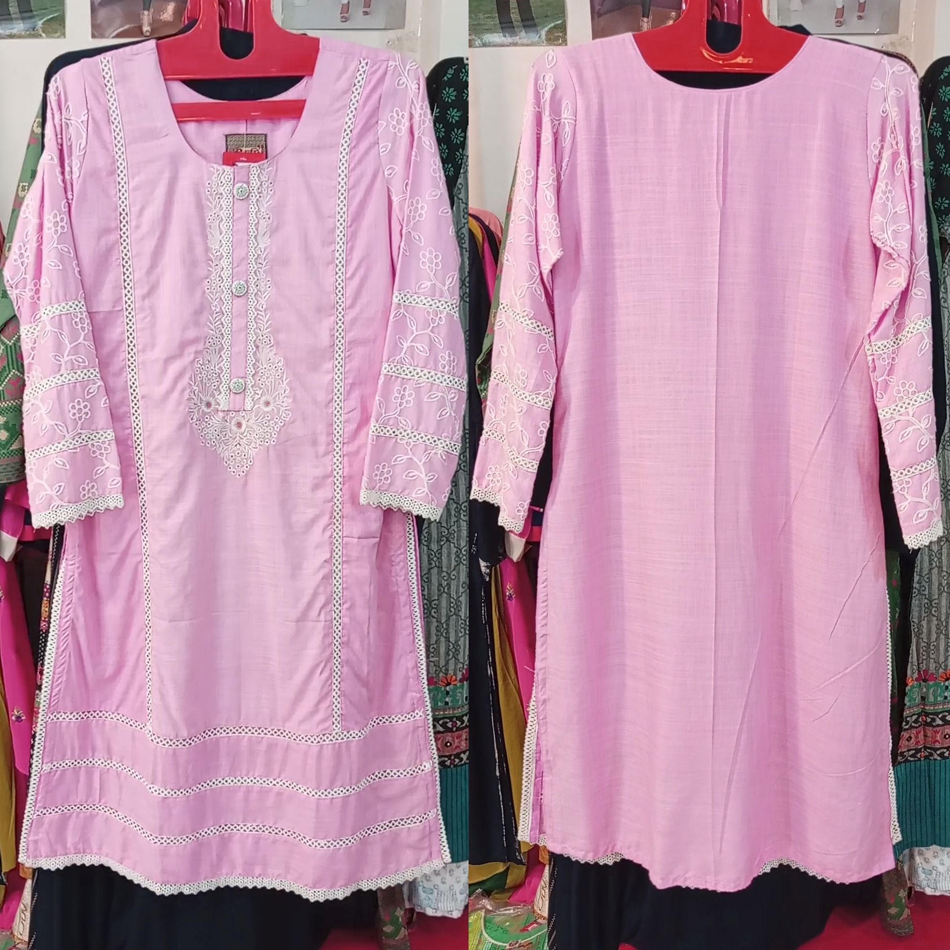 Aesthetic Elegant Embroidered Design Women’s Premium Imported Pink Cotton Kurta | Foring Collection