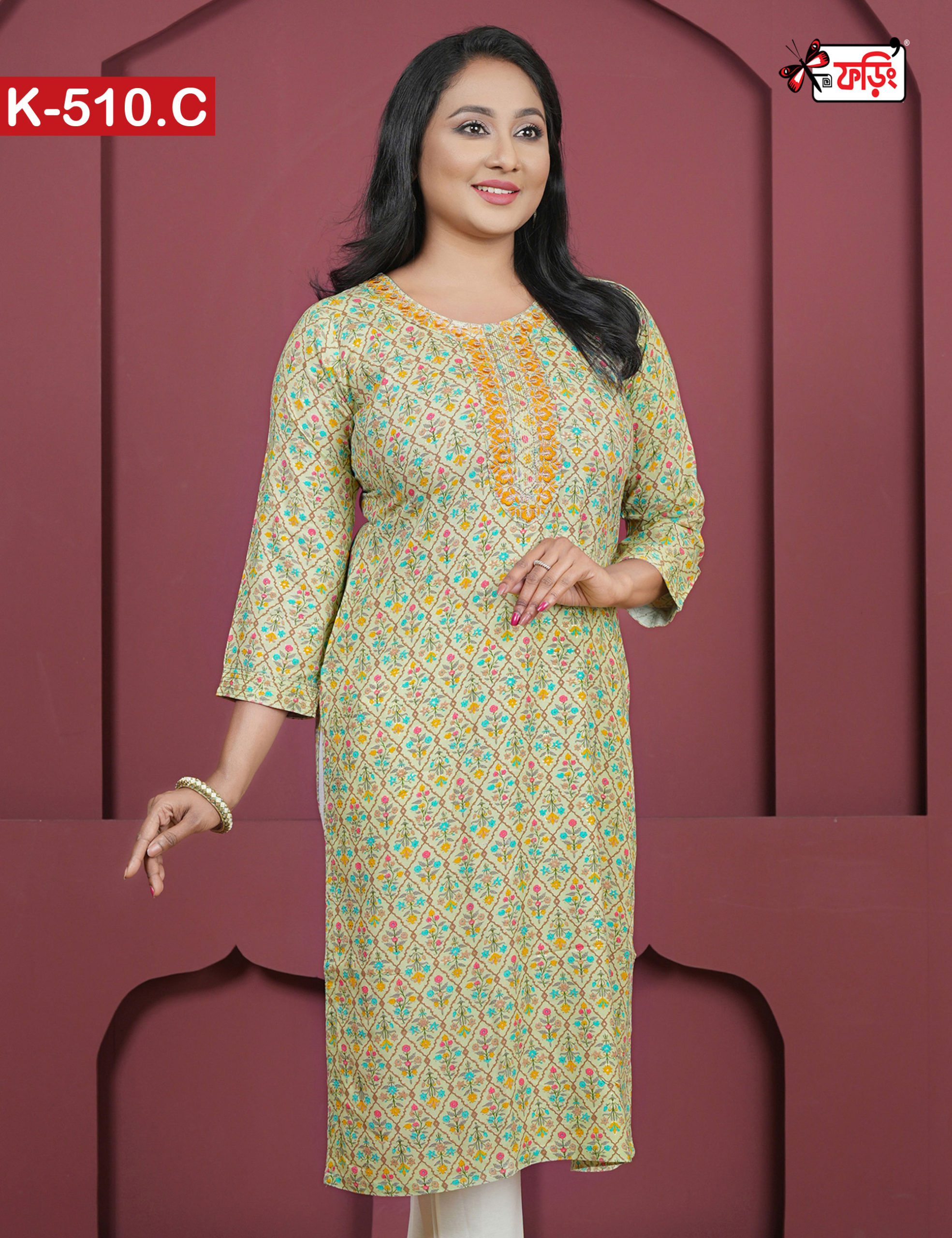 Elegant Embroidered Design Women’s Premium Imported Olive Cotton Kurta | Foring Collection