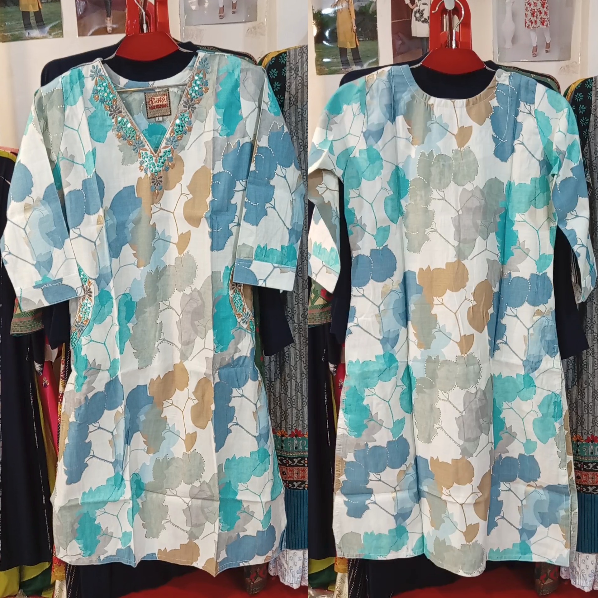 Premium Style Ladies Cotton Two Piece Outfit with Embroidered Design