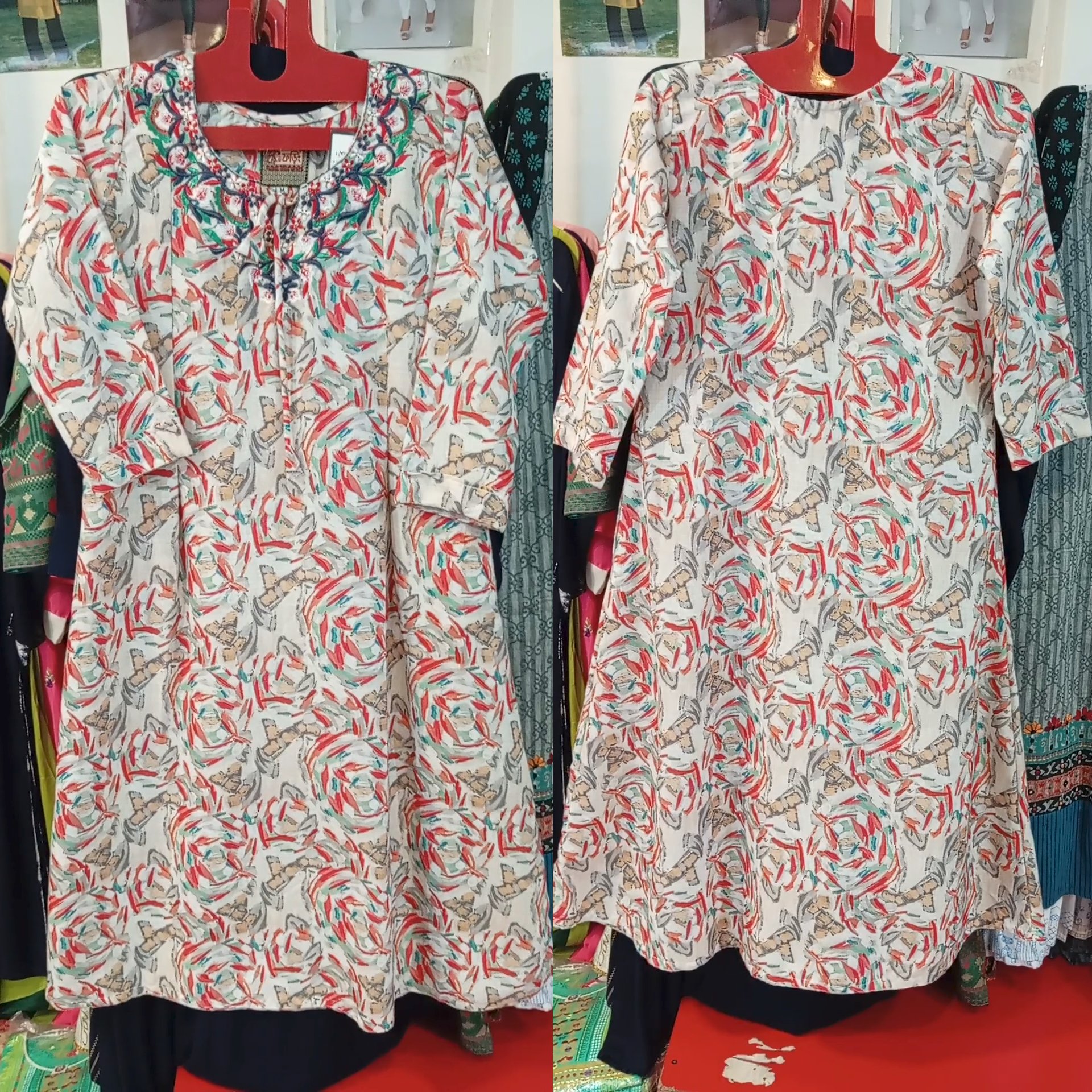 💃 এমব্রয়ডারি কাজ করা রাউন্ড স্টাইল সিল্ক ওয়ান পিস ।