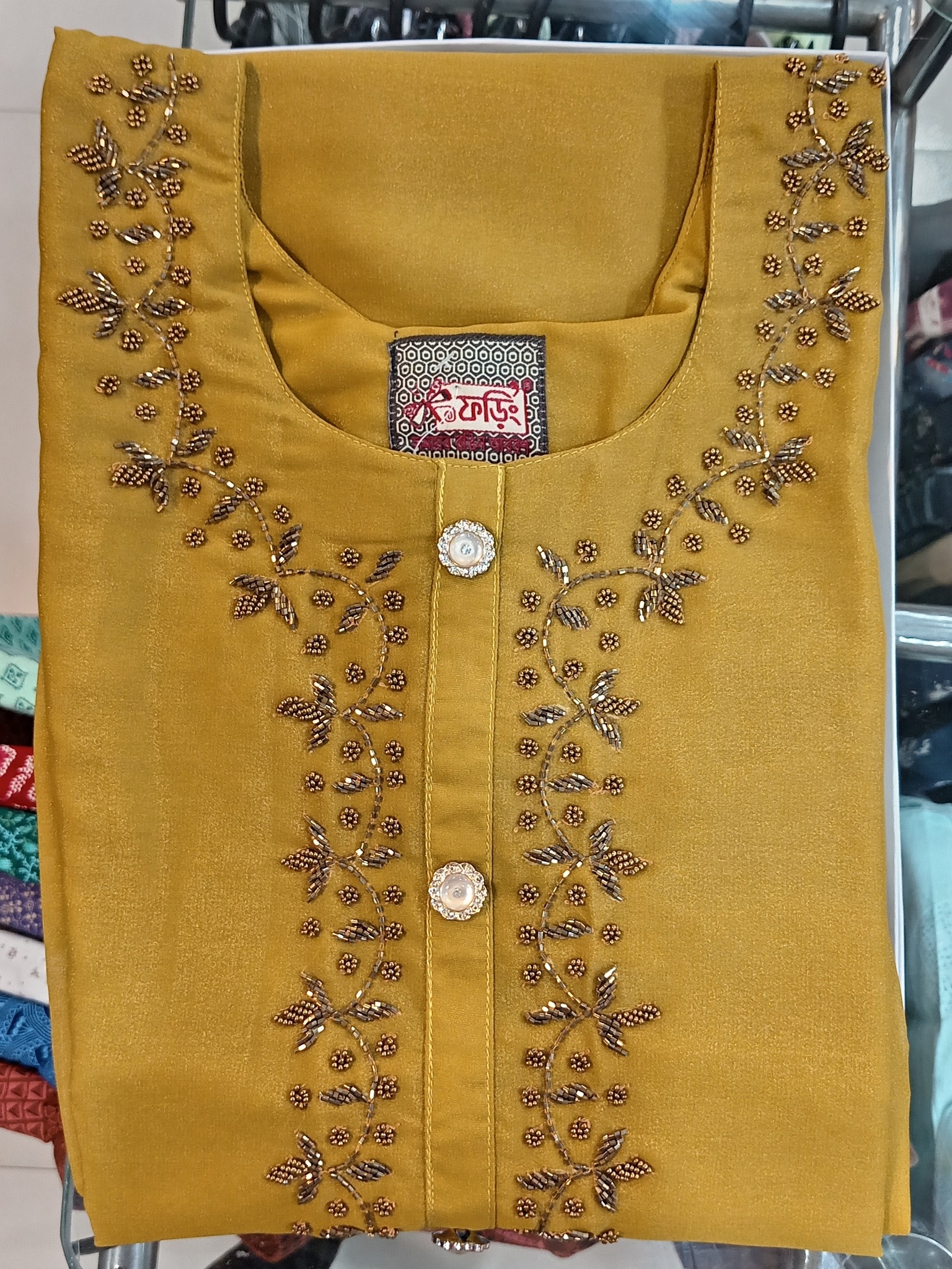 💃 কারচুপি স্টোন ওর্য়াকের কাজ করা কামিজ স্টাইল সিল্ক ওয়ান পিস ।