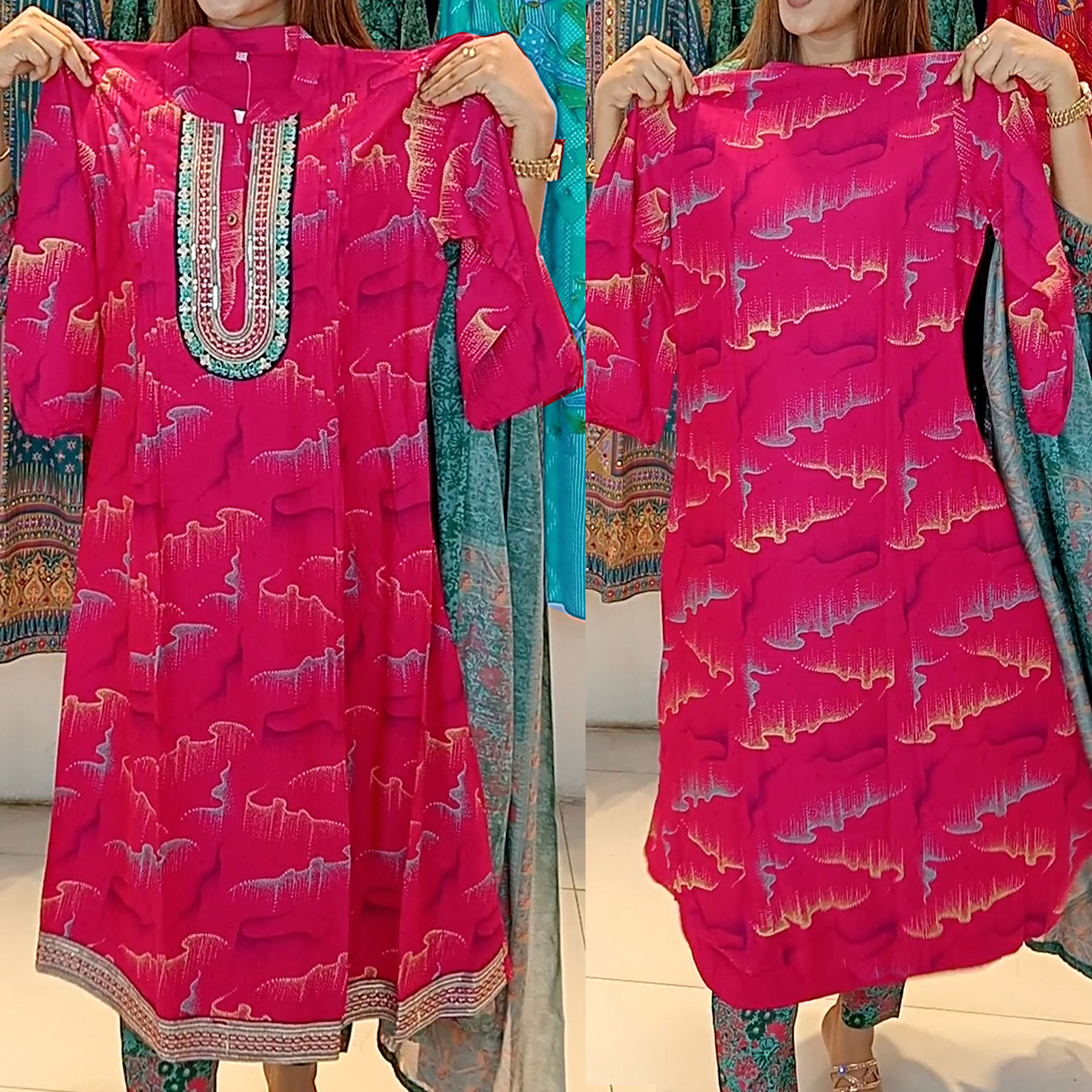 সিল্ক থ্রি-পিছটি পাচ্ছেন এমব্রয়ডারি কাজ করা