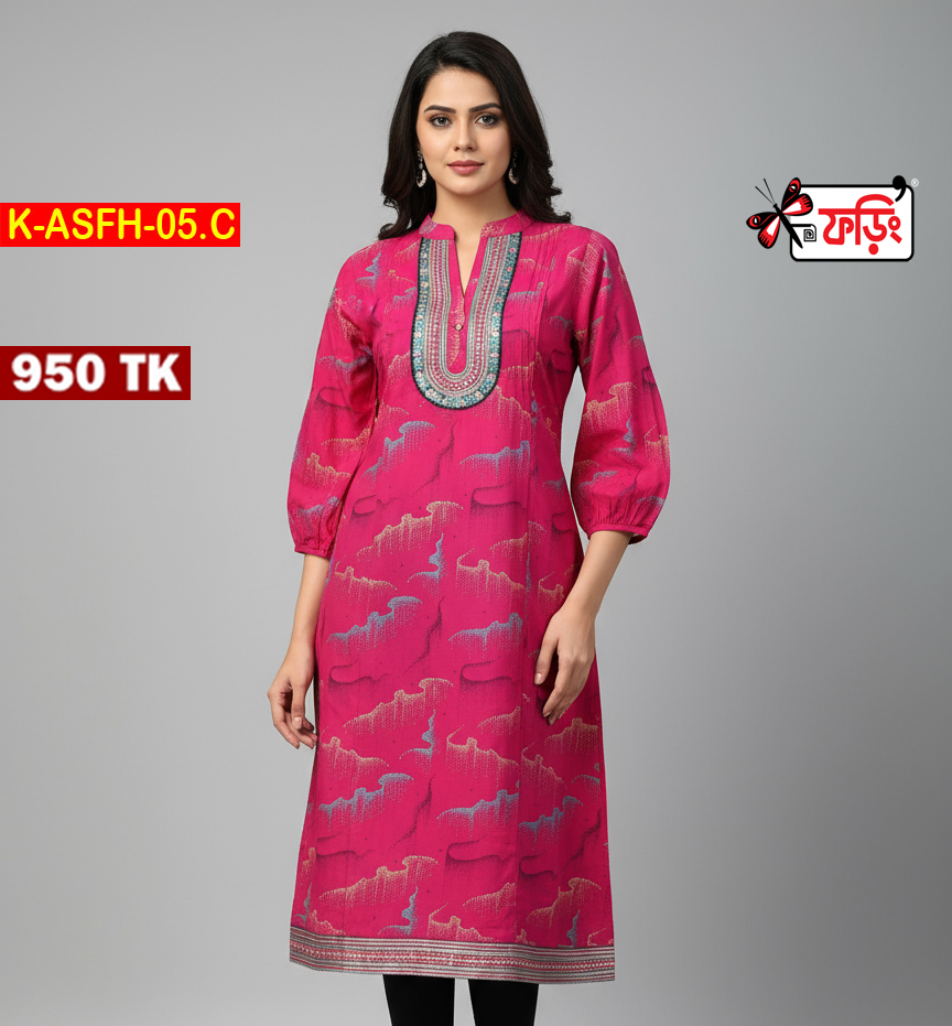 কামিজ স্টাইল কটন ওয়ান পিসটি পাচ্ছেন এমব্রয়ডারি ও স্ক্রিন প্রিন্টের কাজ করা
