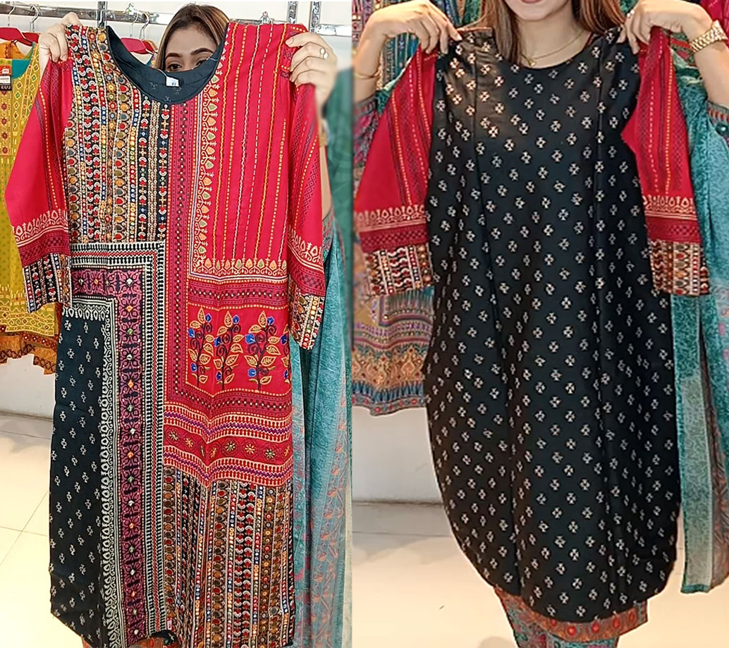 💃 এমব্রয়ডারি ও স্ক্রিন প্রিন্টের কাজ করা  কটন ওয়ান পিস ।