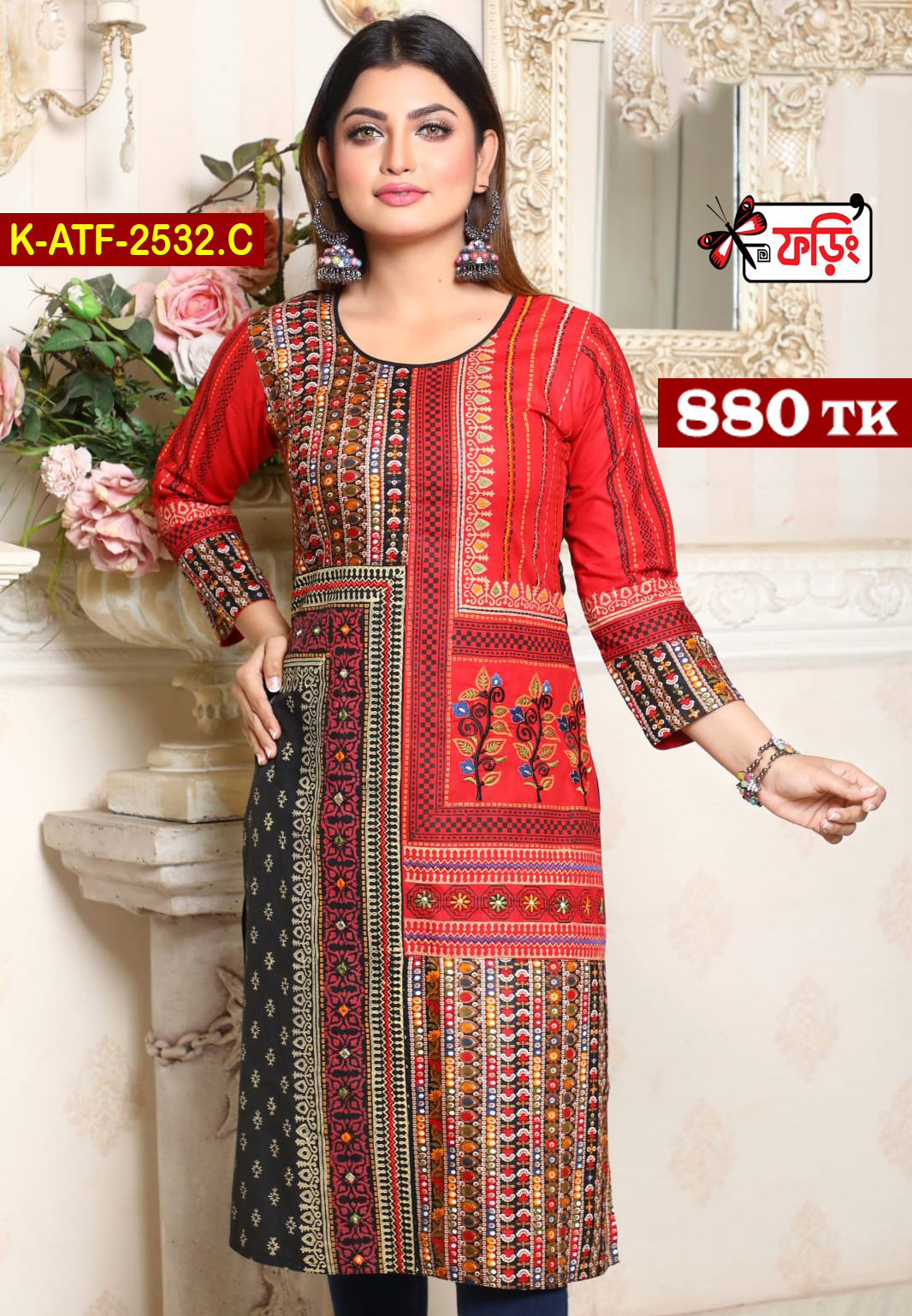 কামিজ স্টাইল কটন ওয়ান পিসটি পাচ্ছেন এমব্রয়ডারি ও স্ক্রিন প্রিন্টের কাজ করা