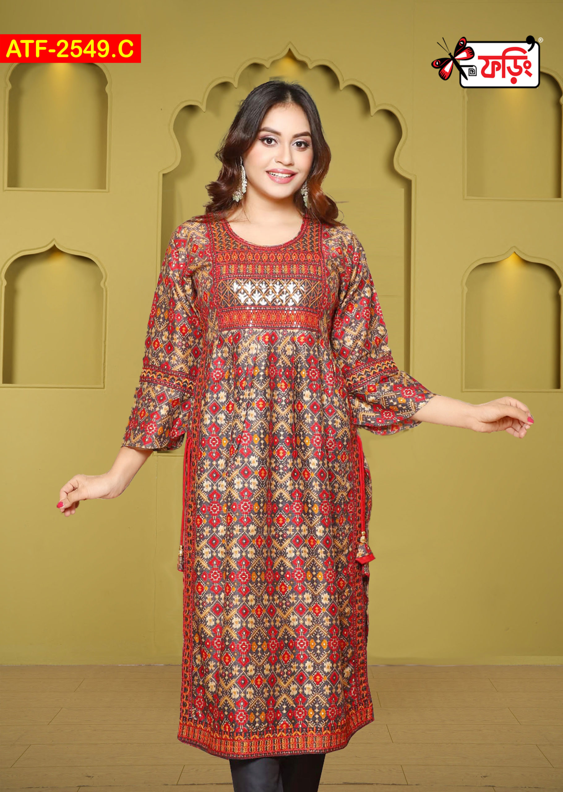 স্ক্রিন প্রিন্ট ও এমব্রয়ডারি এবং সিকোয়েন্স কাজের নায়রা স্টাইল কটন ওয়ান পিস