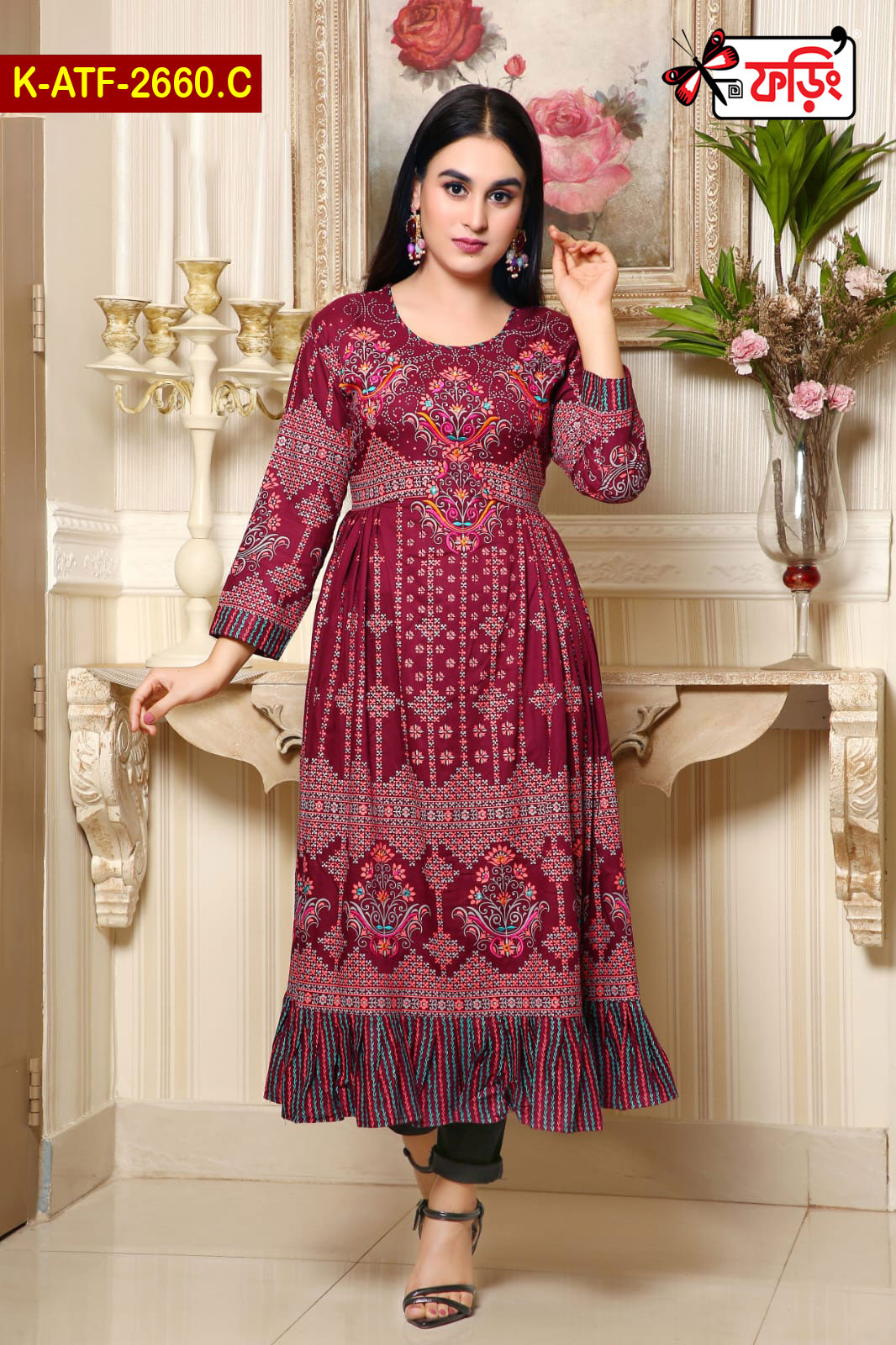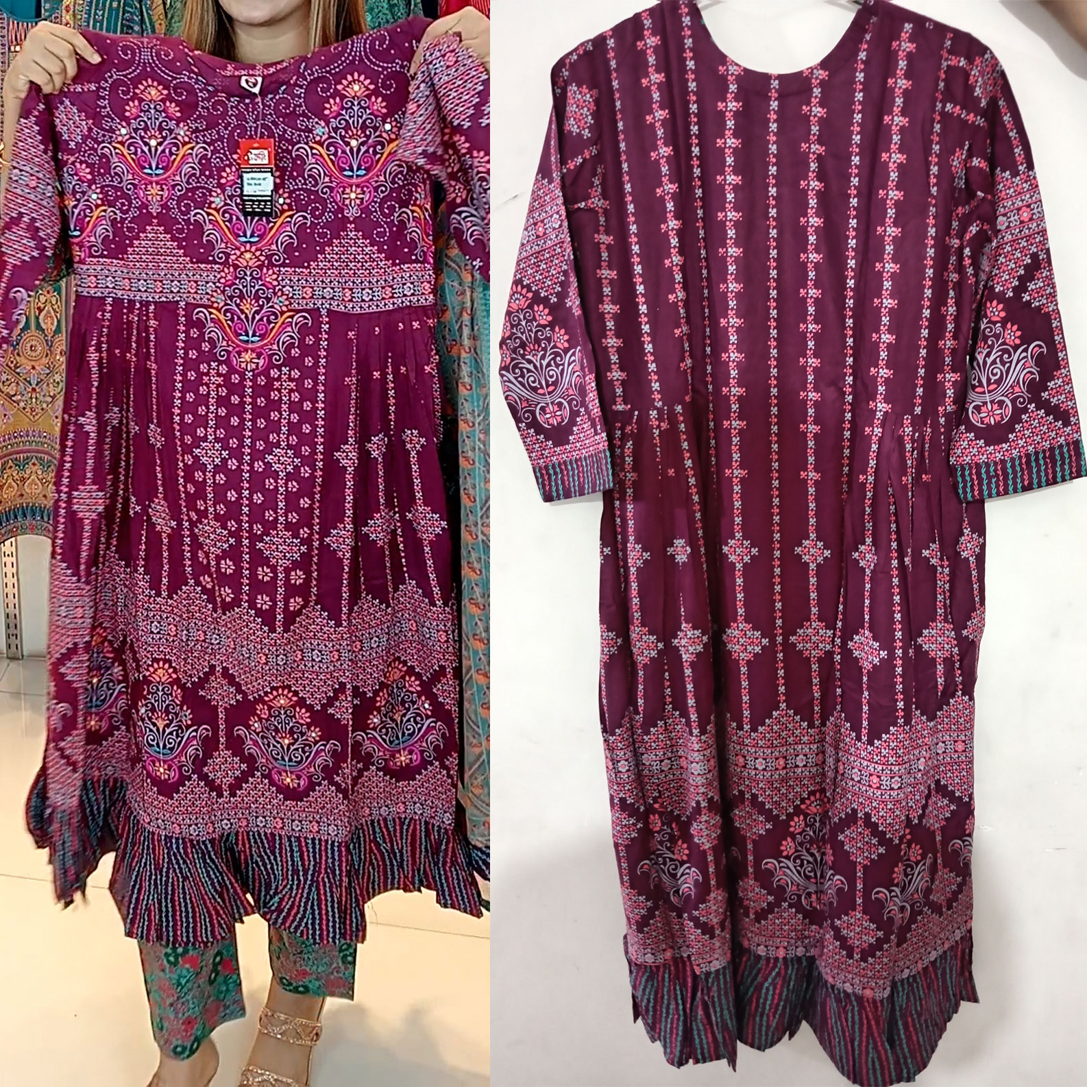 স্ক্রিন প্রিন্টের ও এমব্রয়ডারি কাজের রাউন্ড স্টাইল কটন ওয়ান পিস