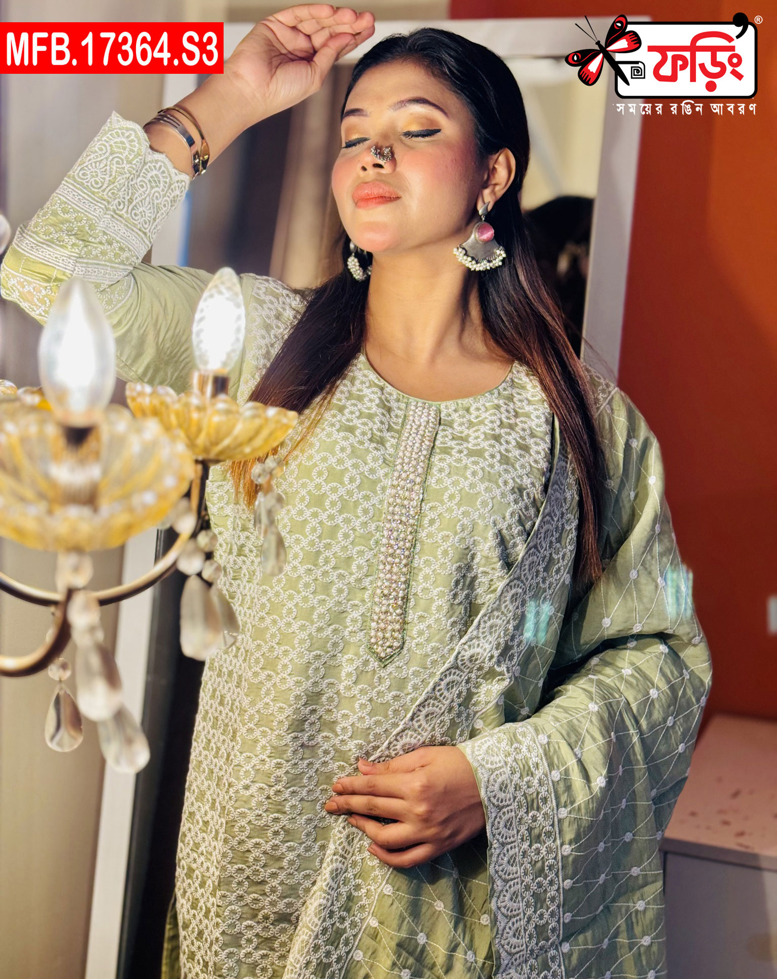 Artistic Embroidered Design Luxury Women’s Imported Silk Fabric Stitched Shalwar Kameez Set