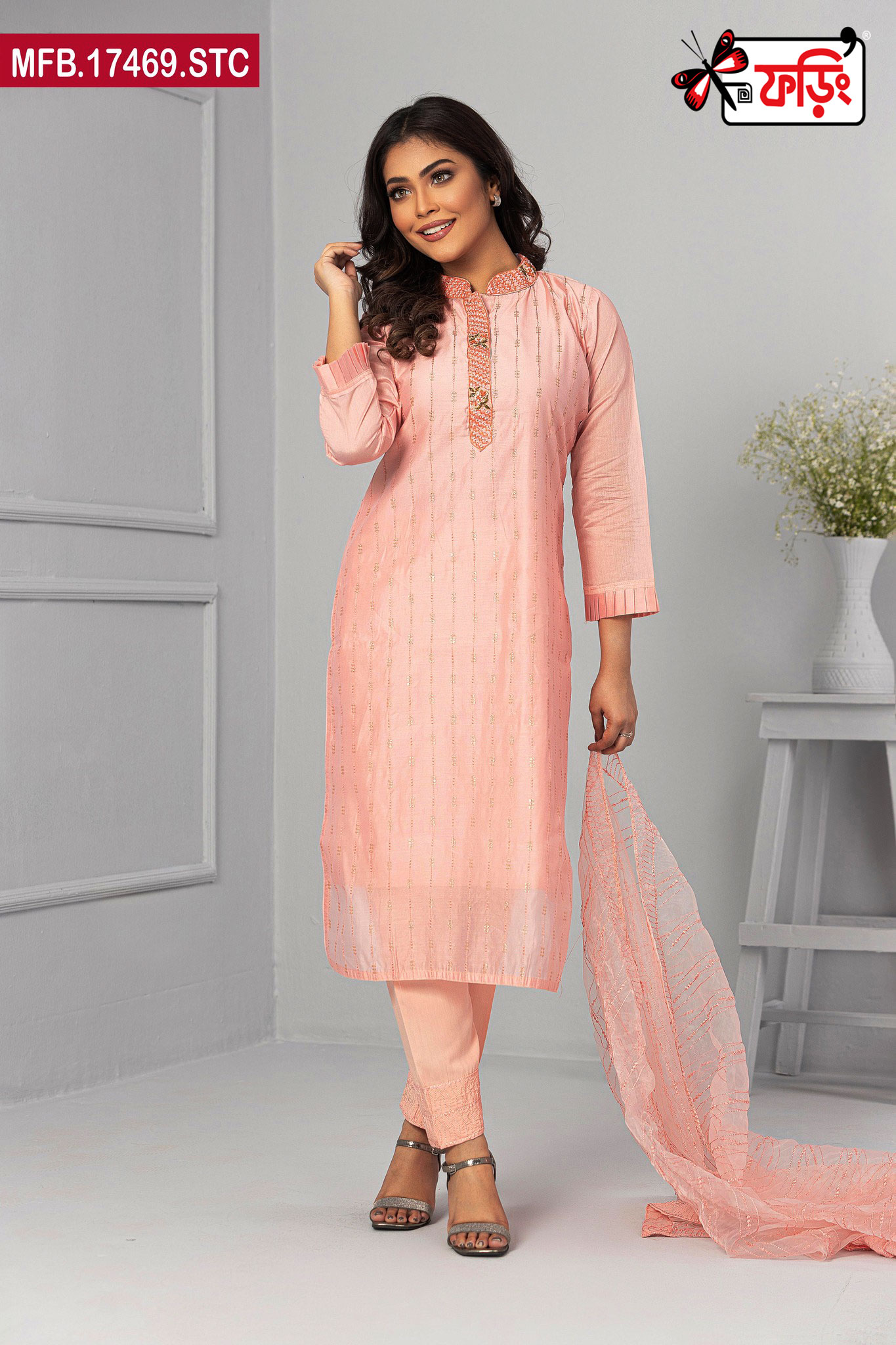 Premium Style Ladies Lilen Two Piece Outfit with Embroidered Design