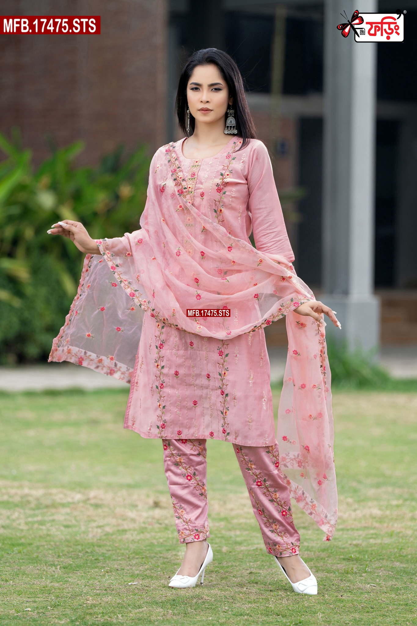 Luxury Women’s Imported Silk Fabric with Embroidered Stitched Shalwar Kameez Set
