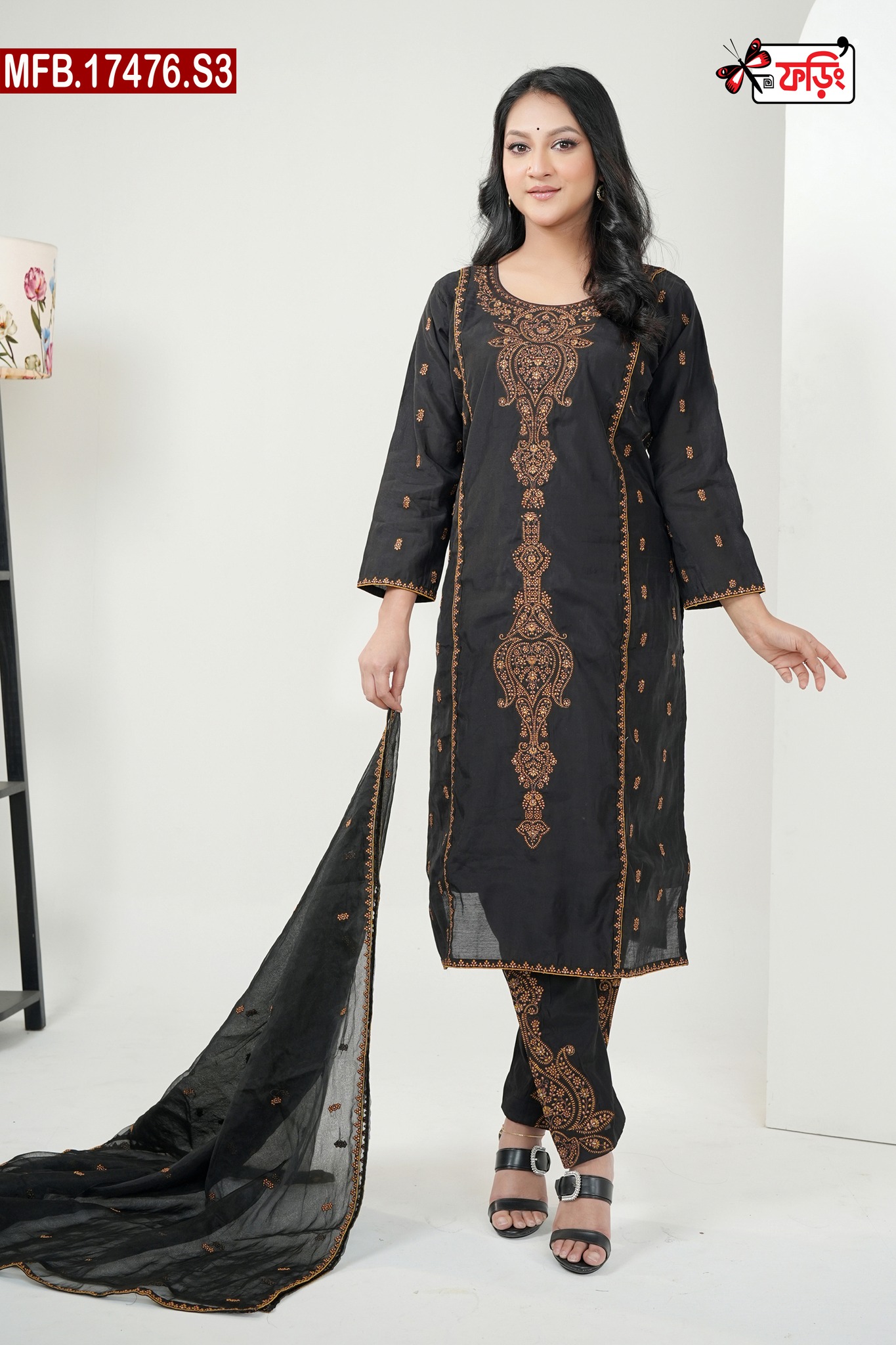 Luxury Women’s Imported Silk Fabric with Embroidered Stitched Shalwar Kameez Set