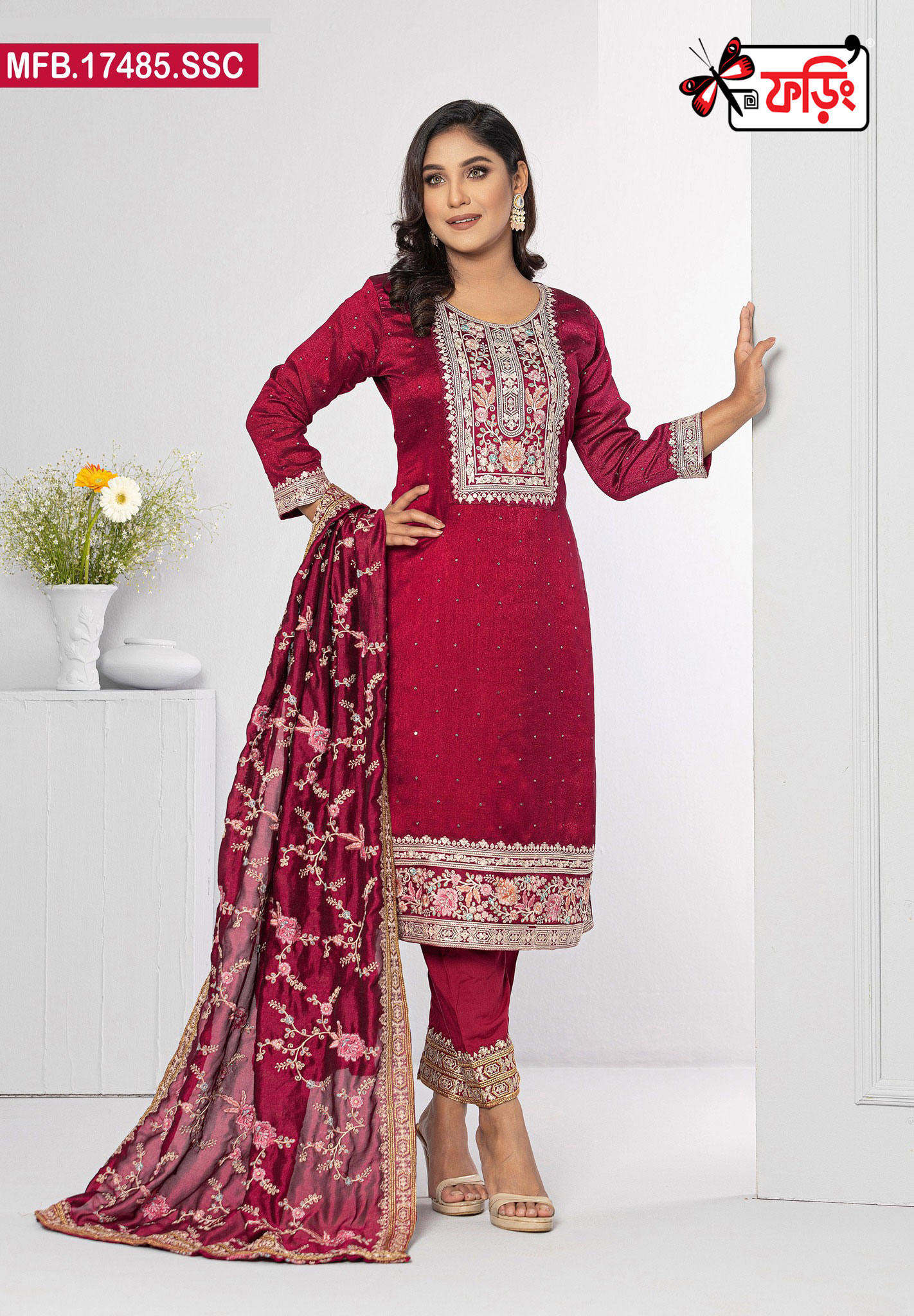 💃এমব্রয়ডারি কাজ করা সিল্ক রেডি থ্রি-পিছ