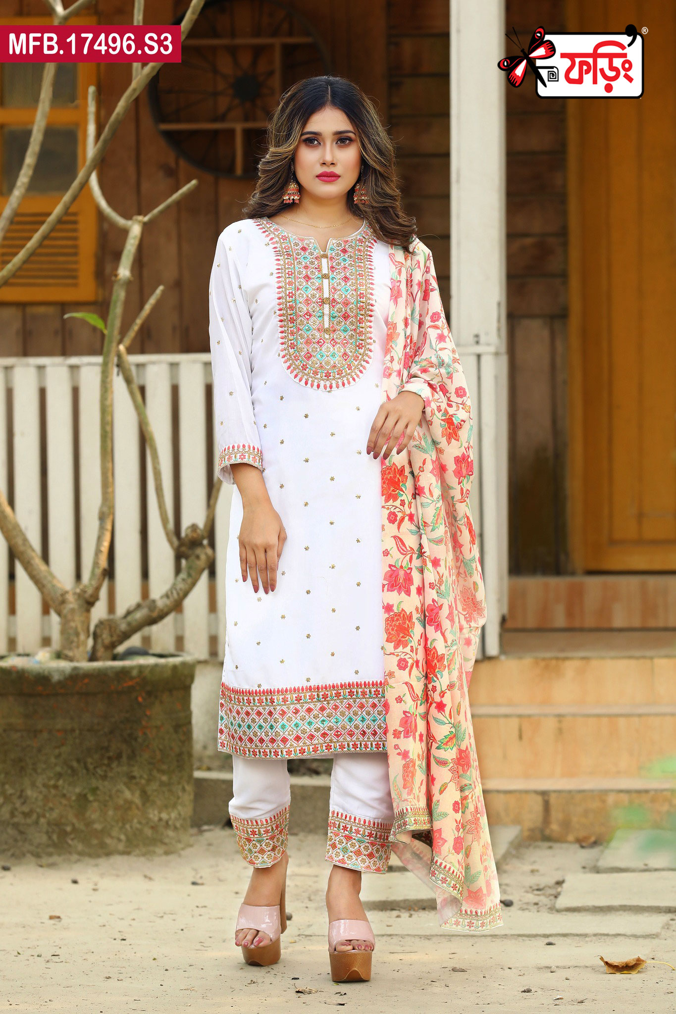Luxury Women’s Imported Silk Fabric with Embroidered Stitched Shalwar Kameez Set