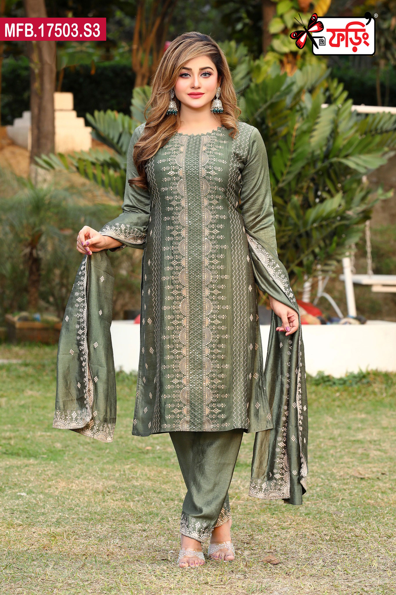 Luxury Women’s Imported Silk Fabric with Embroidered Stitched Shalwar Kameez Set
