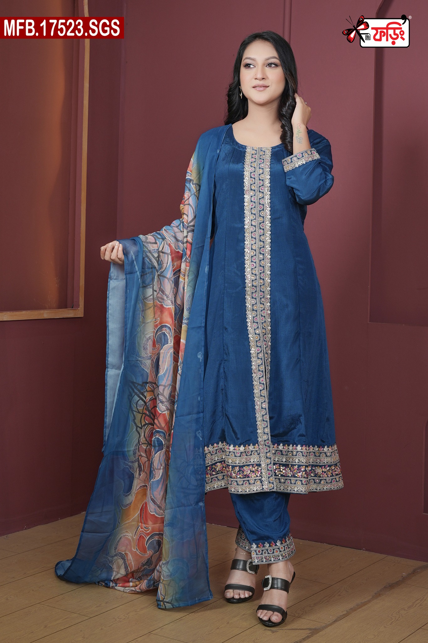 Luxury Women’s Imported Silk Fabric with Embroidered Stitched Shalwar Kameez Set