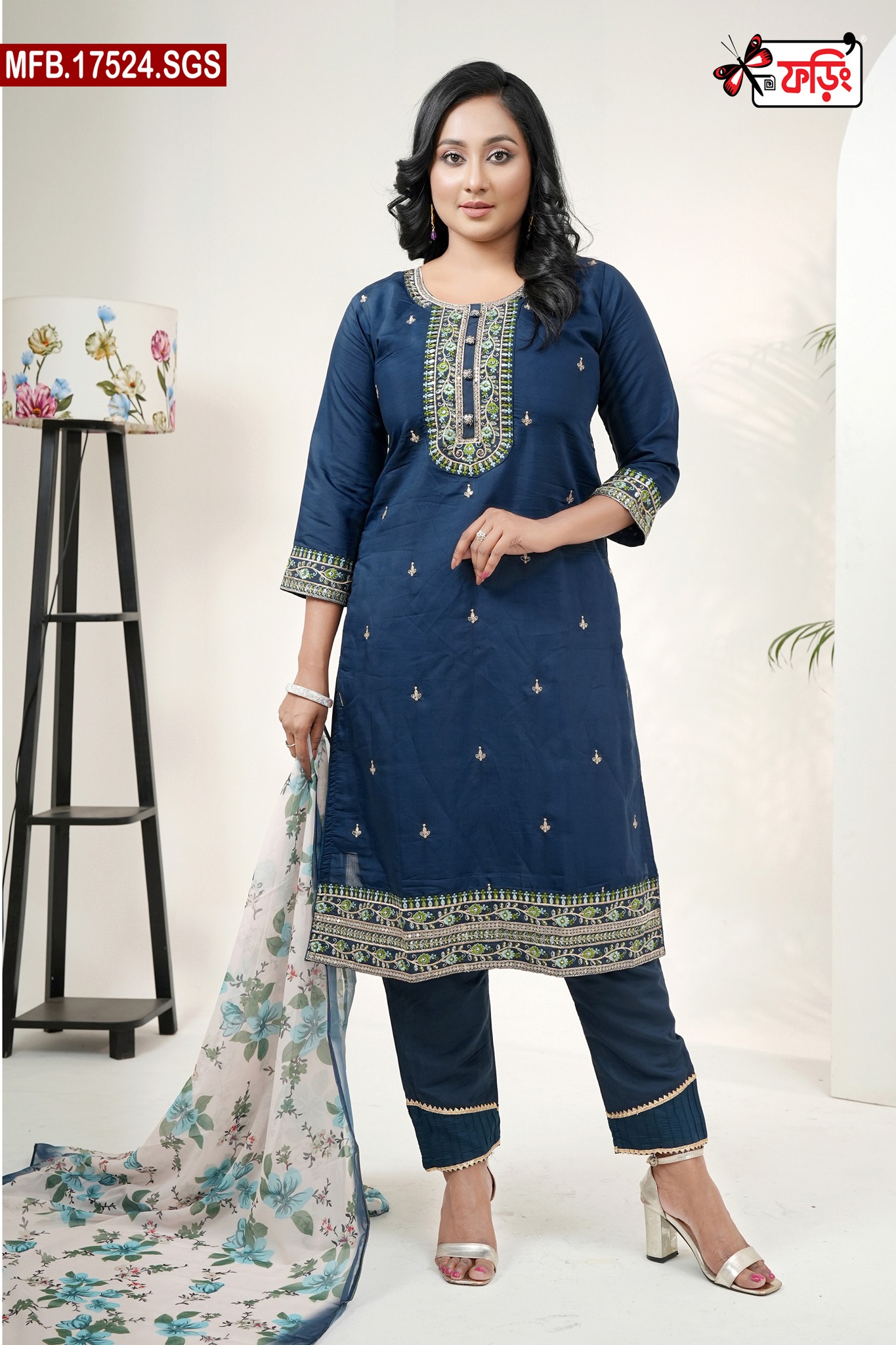 Luxury Women’s Imported Silk Fabric with Embroidered Stitched Shalwar Kameez Set