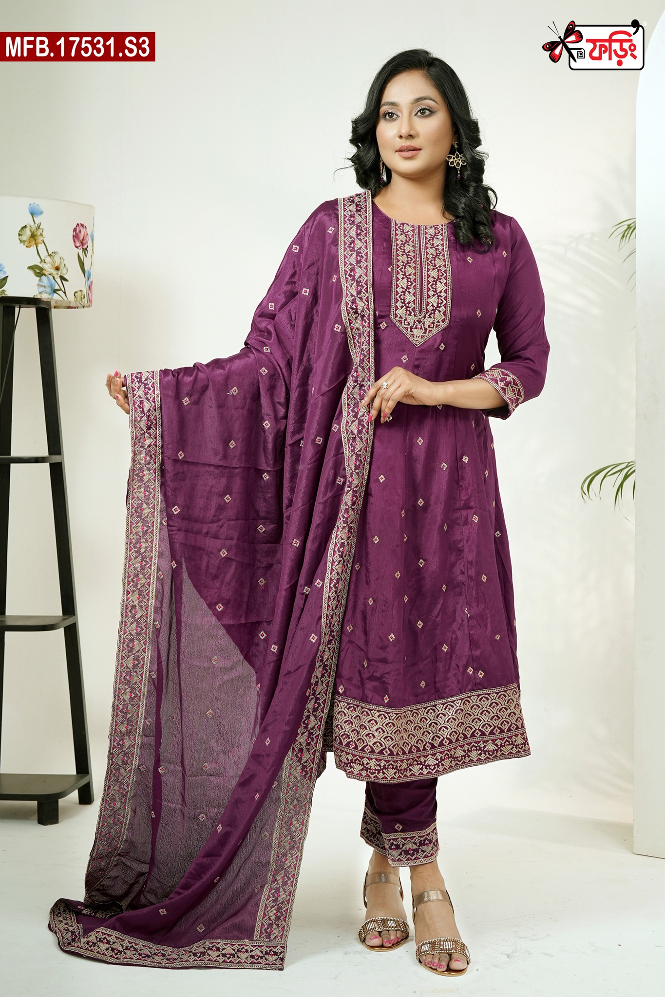 Luxury Women’s Imported Silk Fabric with Embroidered Stitched Shalwar Kameez Set