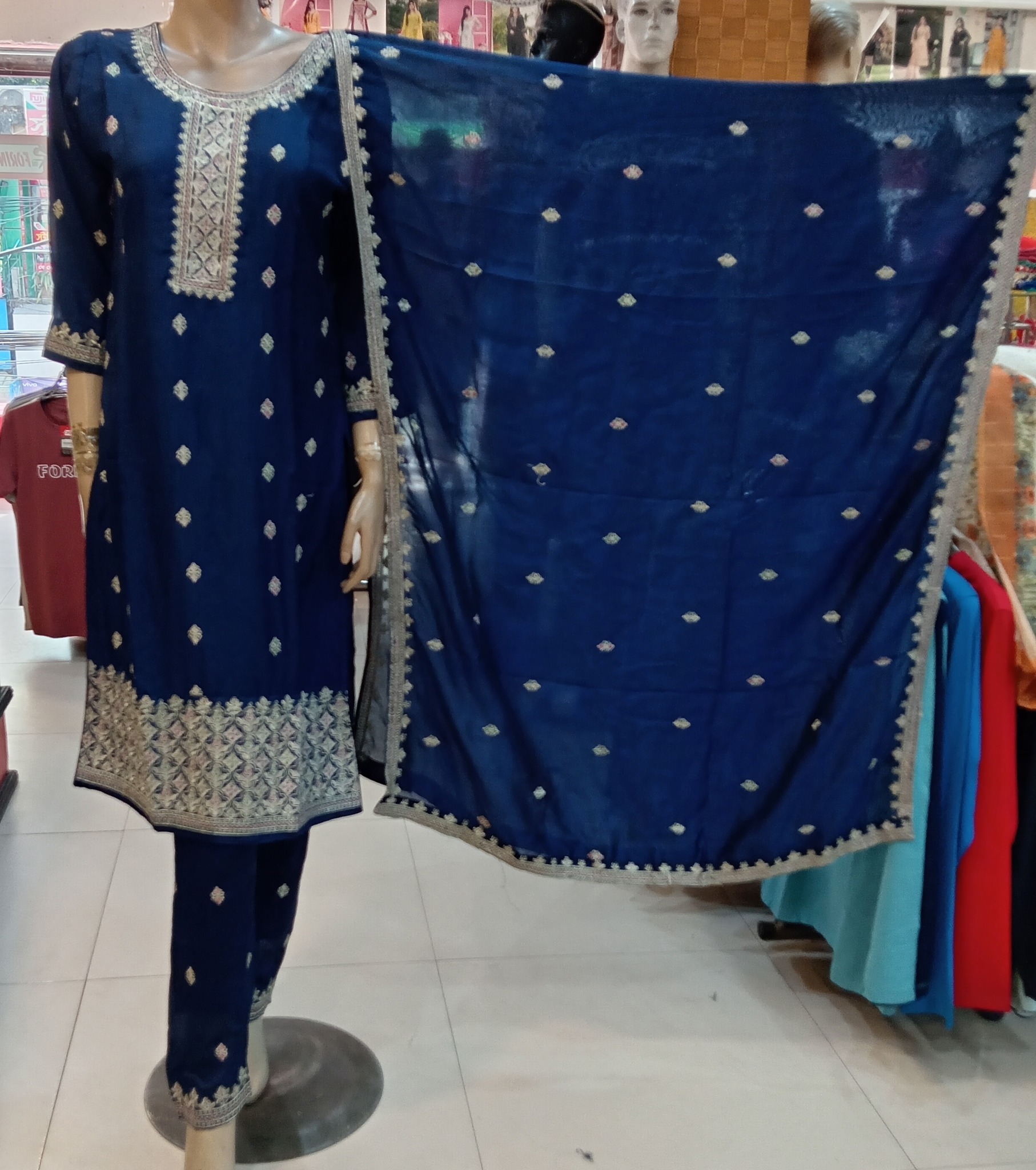 💃এমব্রয়ডারি কাজ করা সিল্ক রেডি থ্রি-পিছ