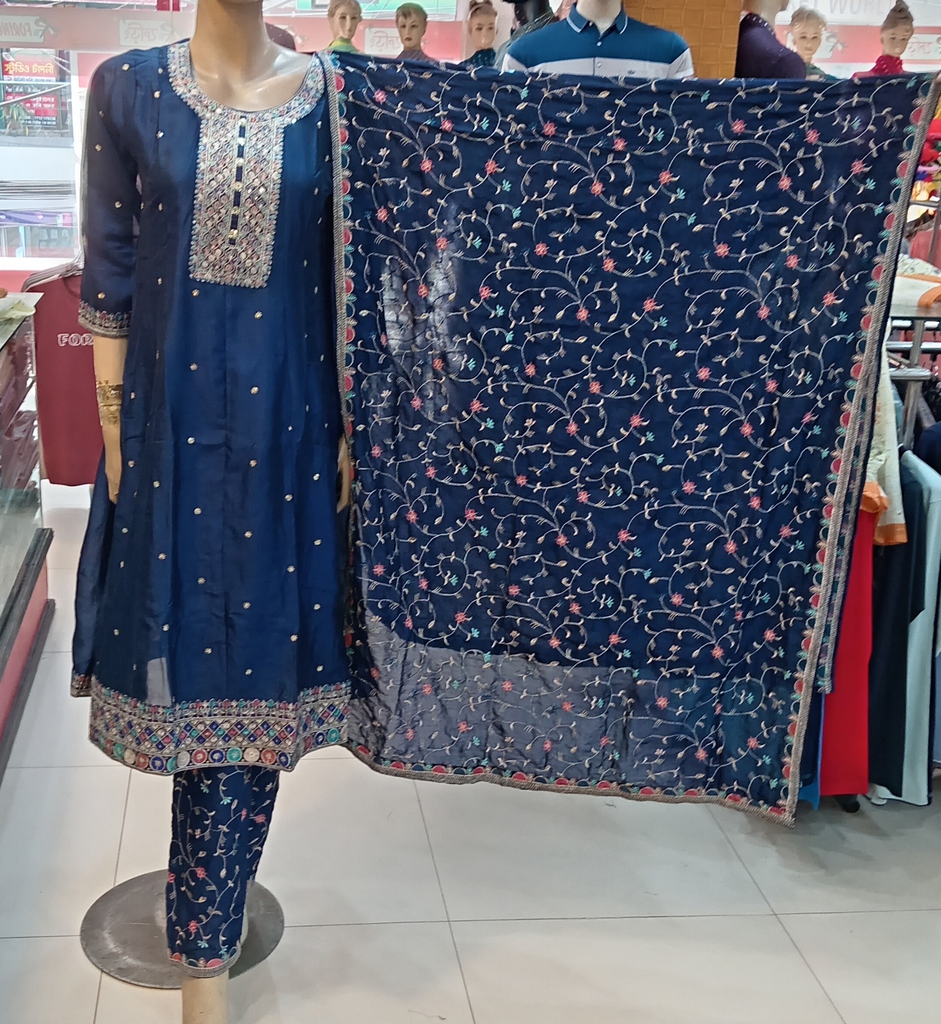 💃এমব্রয়ডারি কাজ করা সিল্ক রেডি থ্রি-পিছ