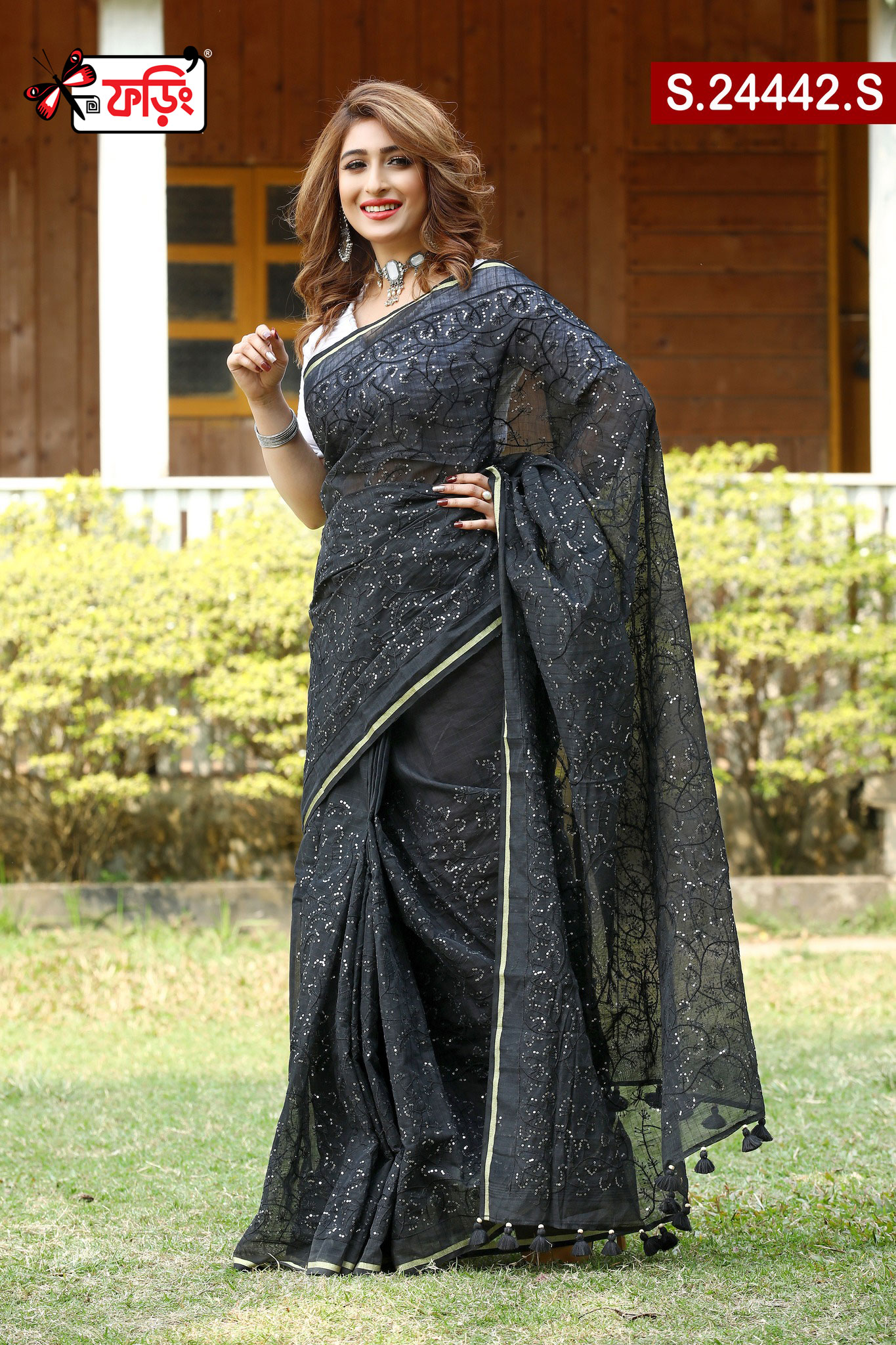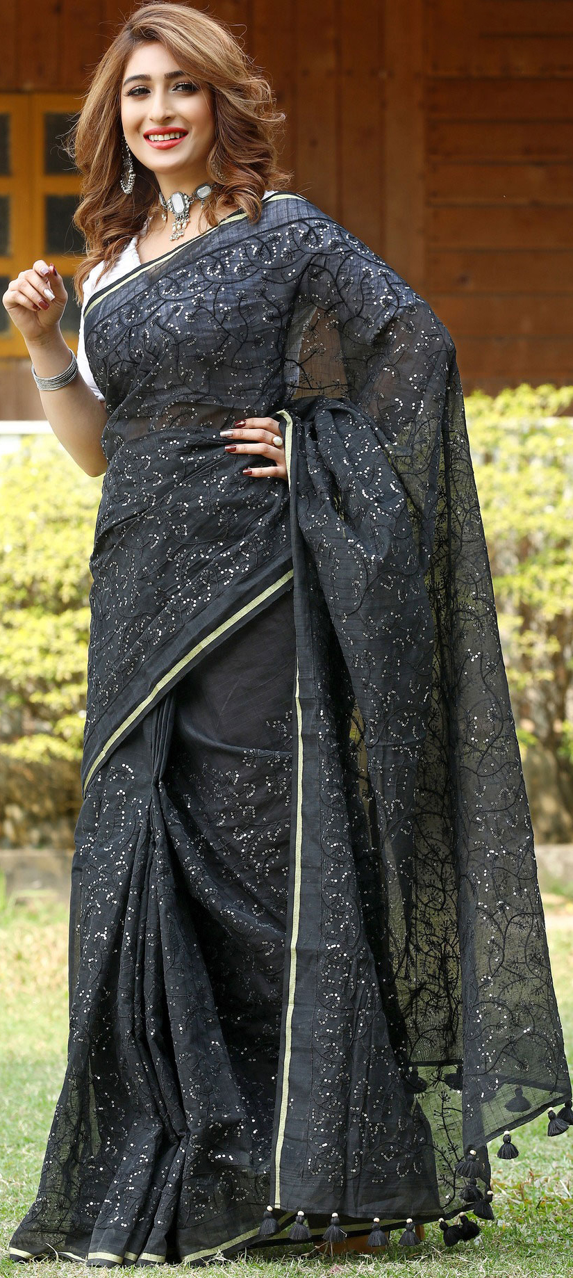 ✅ Aesthetic Design Black color Sequence Silk Saree. Premium Stylish and elegant piece from – Foring Collection. Include Running Blouse Piece Available.
