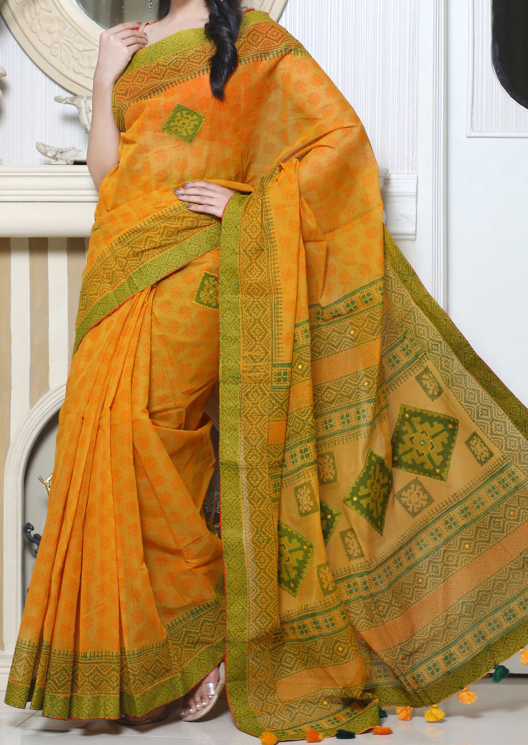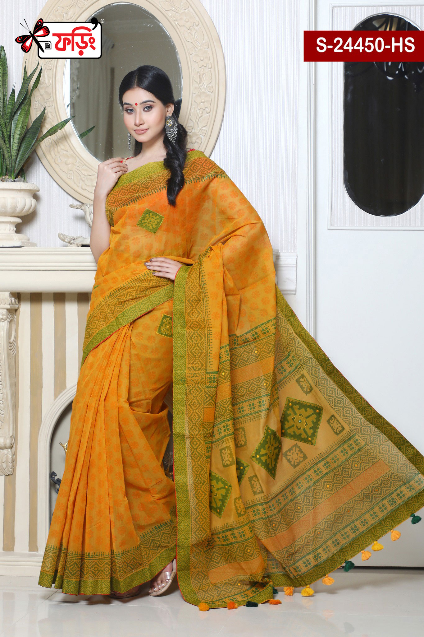Premium Half Silk Boutique Sharee | Embroidered & Screen Printed – Foring Collection. Include Running Blouse Piece Available