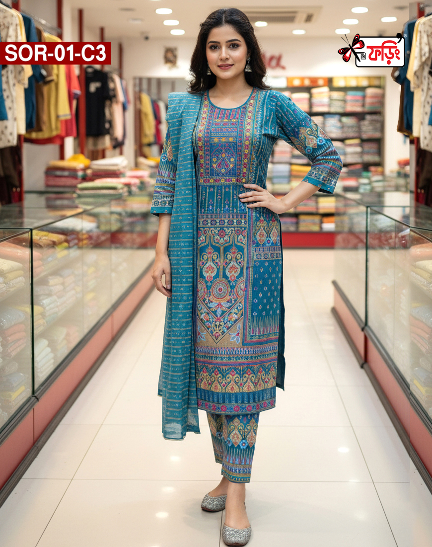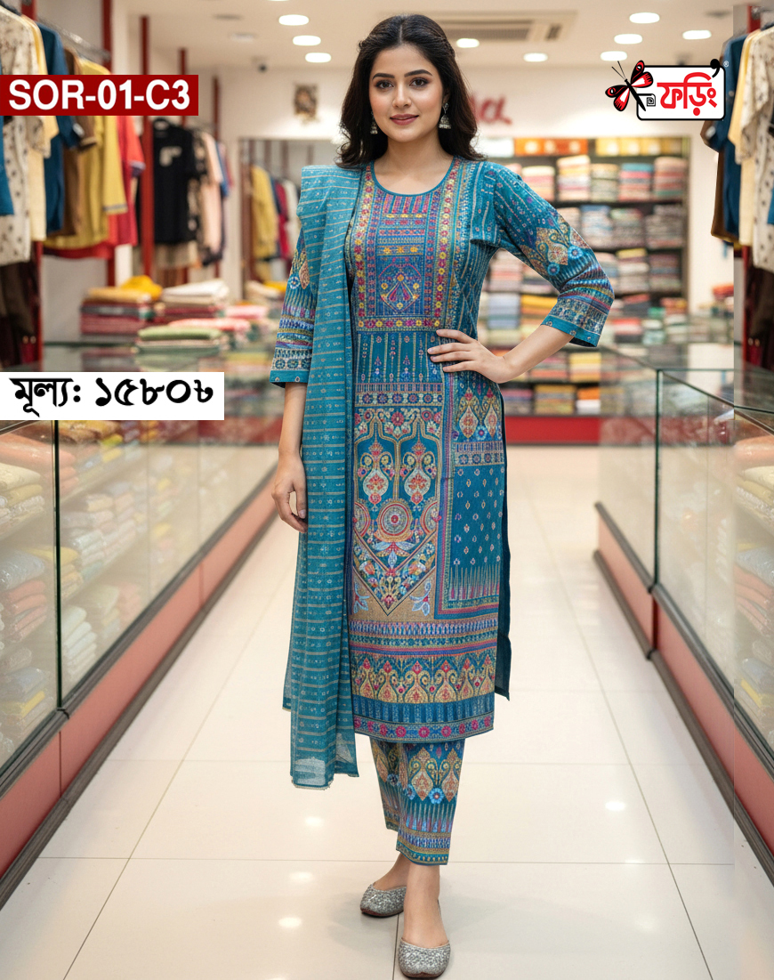 সফ্ট সিল্ক থ্রি-পিছটি পাচ্ছেন কারচুপি, এমব্রয়ডারি ও স্ক্রিন প্রিন্টের কাজ করা