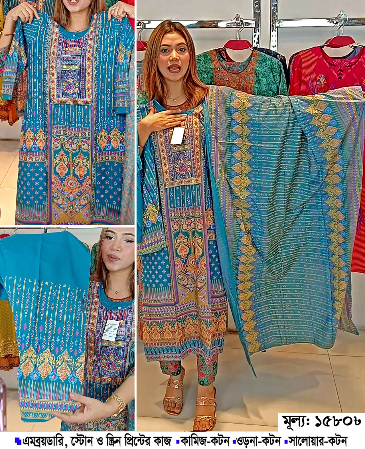 কটন থ্রি-পিছটি পাচ্ছেন এমব্রয়ডারি ও ব্লক প্রিন্টের কাজ করা