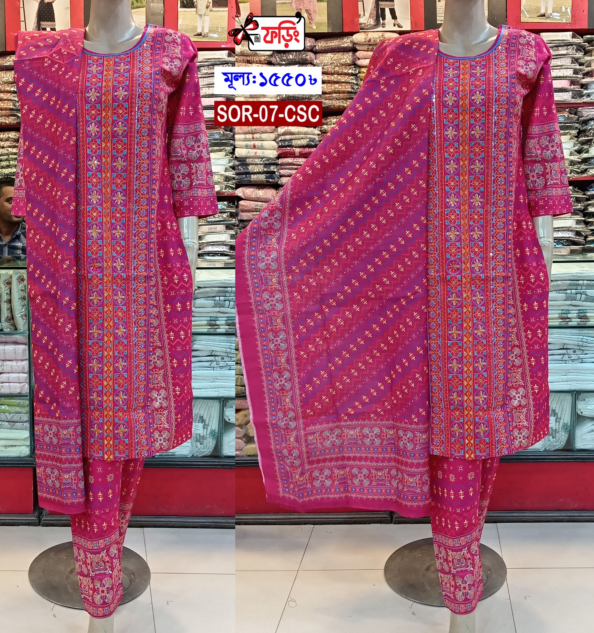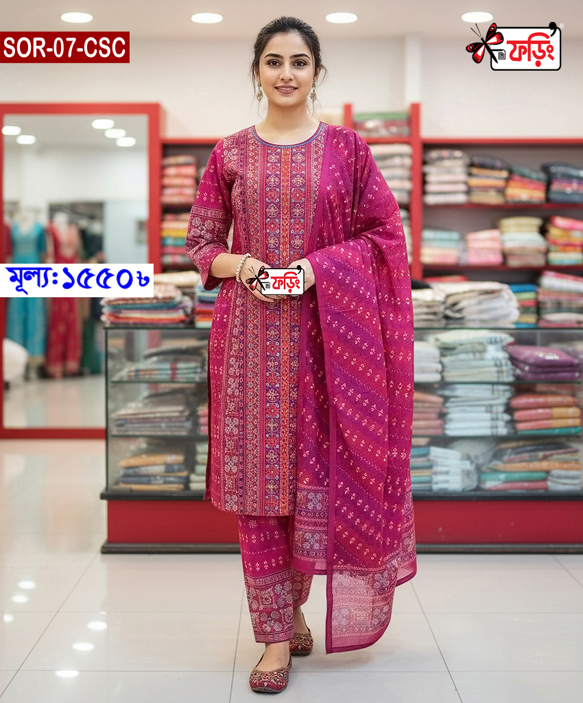 আপনি কোনও উৎসব উদযাপনে যোগদান করুন বা কোনও আনুষ্ঠানিক সন্ধ্যার আয়োজন করুন না কেন, এই কটন থ্রি-পিস আপনাকে আলাদা করে তুলে ধরার জন্য ডিজাইন করা হয়েছে। Foring আপনাকে রঙের গ্যারান্টি এবং একটি নিখুঁত সেলাই দেয়। আপনি আমাদের ফেসবুক পেজ foring-কেও অনুসরণ করতে পারেন।